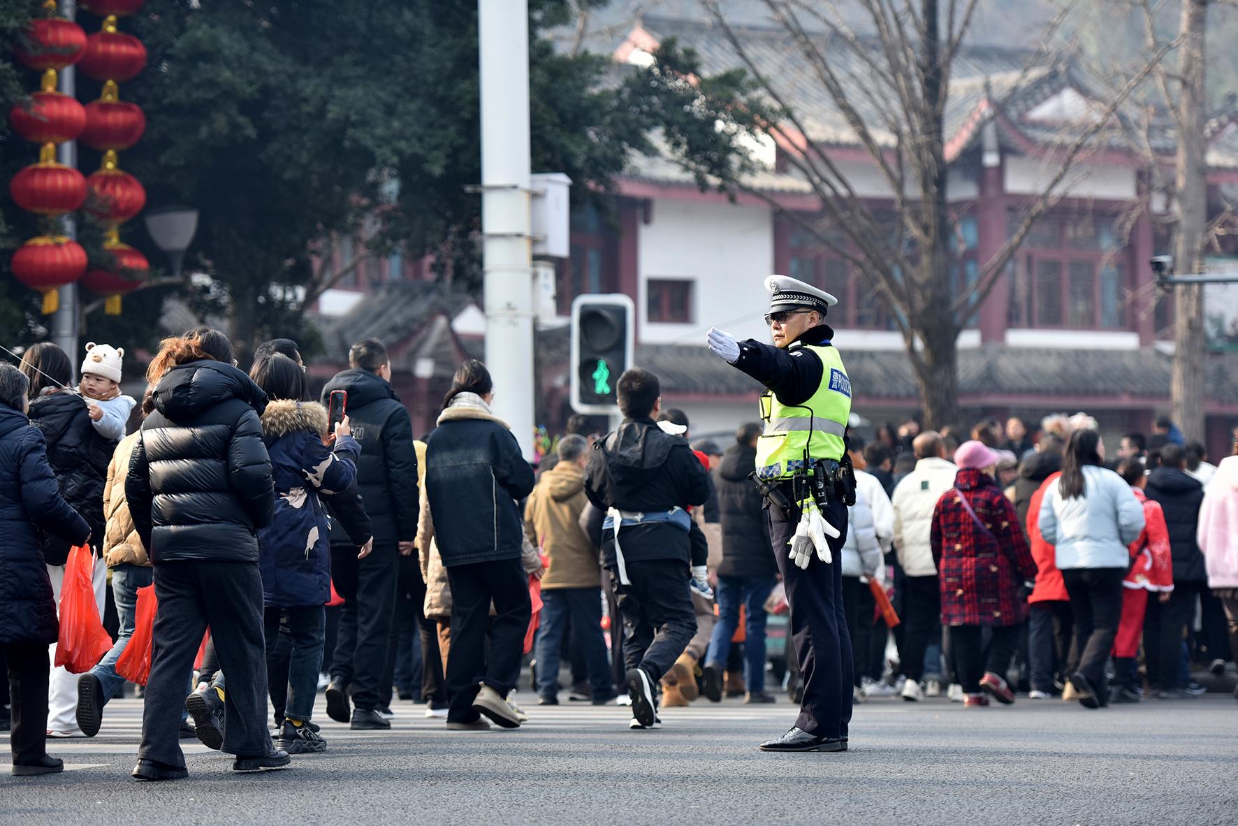 1月29日,大年初一。四川省綿陽市公安局交警支隊直屬一大隊加強了轄區(qū)民俗活動、商業(yè)區(qū)域周邊交通秩序管控力度,確保道路安全暢通。