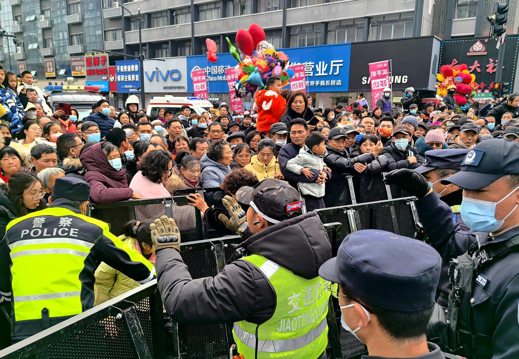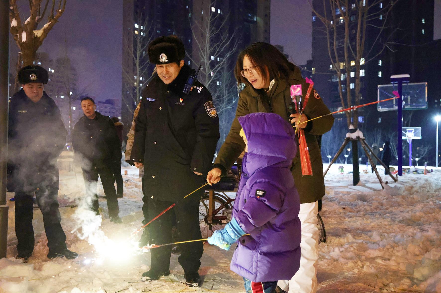 1月29日,遼寧省沈陽市渾南分局五三派出所民警對燃放煙花的群眾進行勸導(dǎo)。