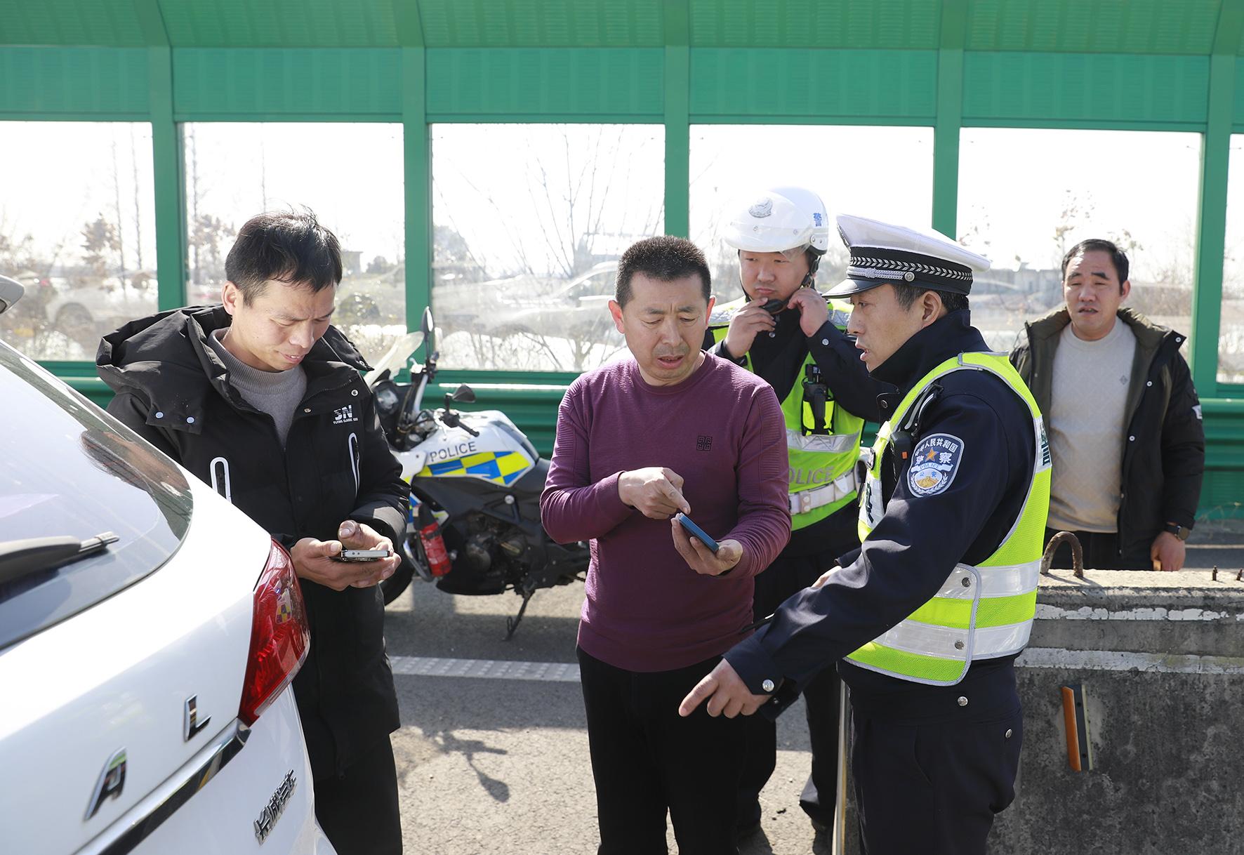 2月4日,安徽省蕪湖市公安局交警支隊高速三大隊民警在蕪合高速二壩樞紐附近路段處理一起交通事故。