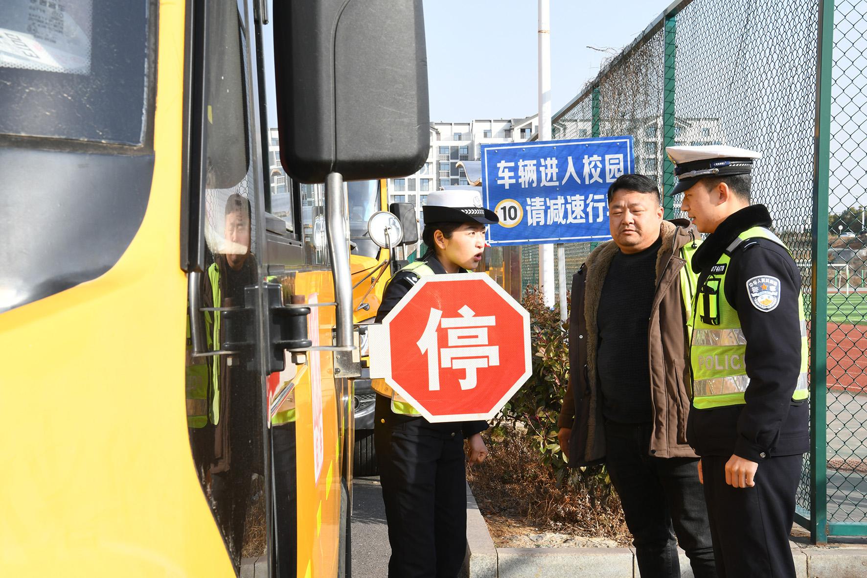 2月7日,安徽省馬鞍山市含山縣公安局交管大隊組織民警對全縣校車開展安全專項檢查。