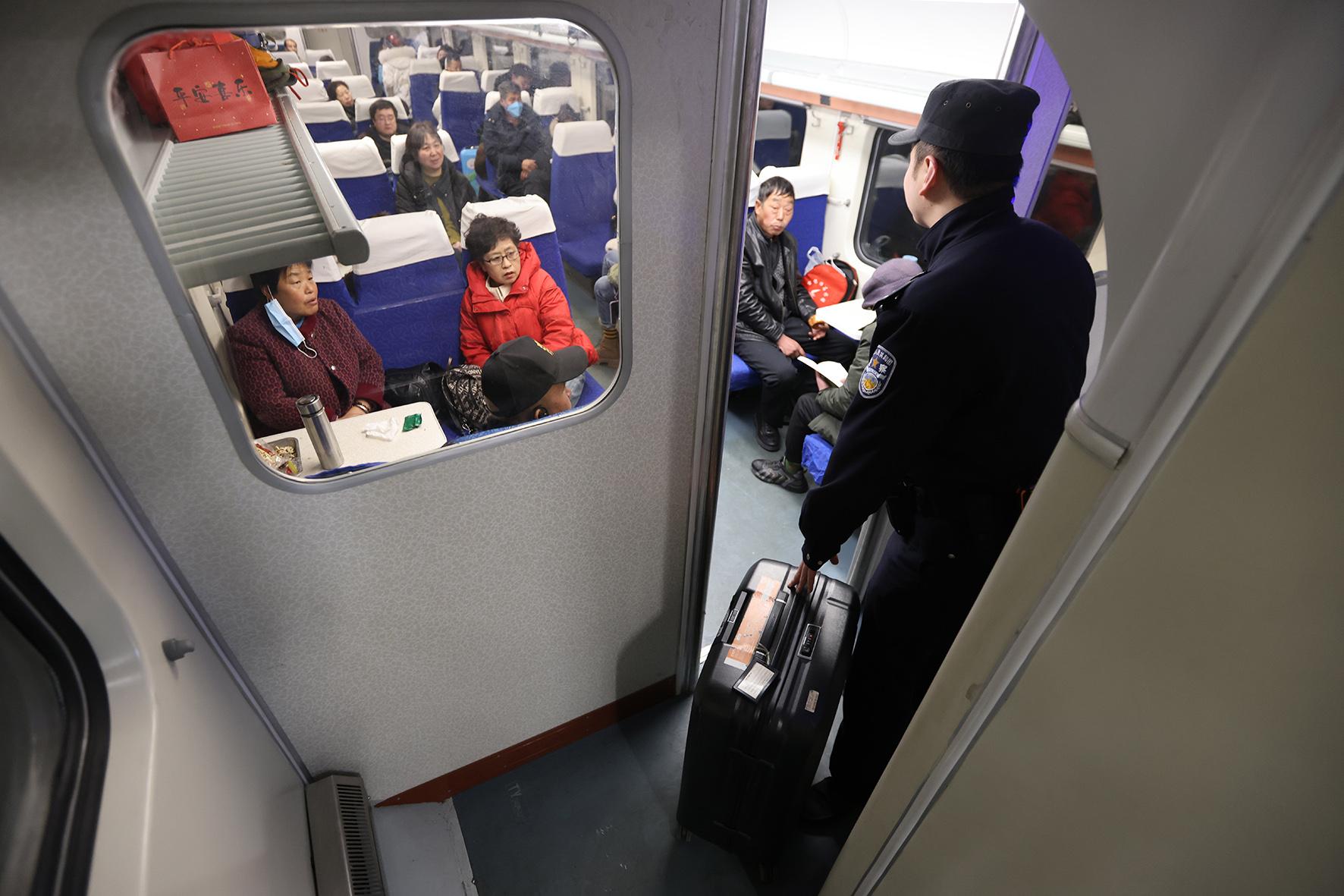 乘警李軼豪對(duì)臥鋪車廂開展安全巡視。