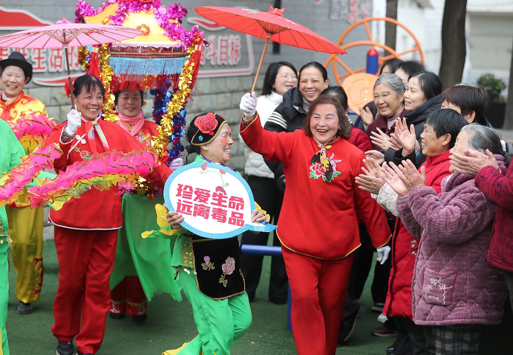 2月10日,湖北省荊門市掇刀區(qū)白廟街道牌坊社區(qū)以喜聞樂見的方式,向社區(qū)居民開展春節(jié)系列普法宣傳活動。