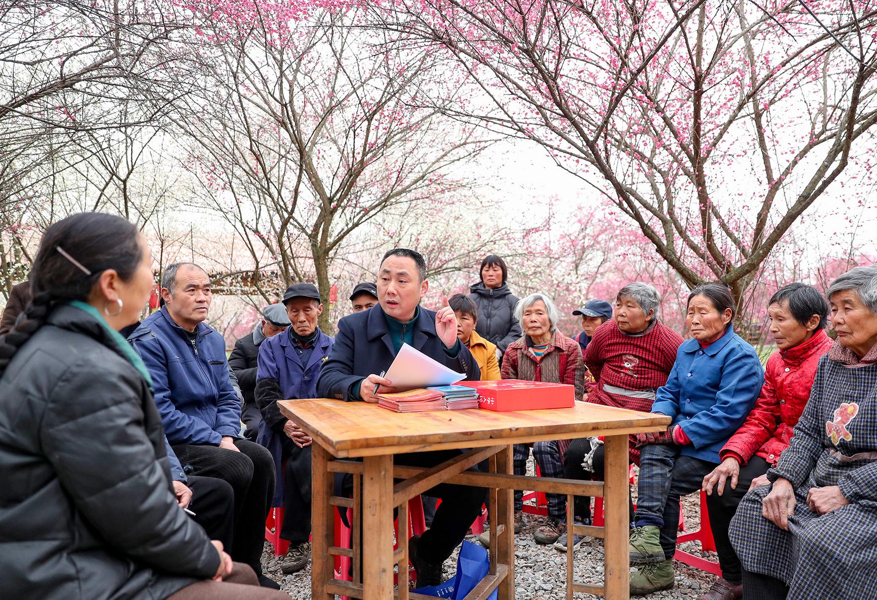 2月11日,四川省華鎣市祿市鎮(zhèn)涼水井村的法律顧問在村頭的生態(tài)園組織業(yè)主和務(wù)工村民學習相關(guān)法律知識。