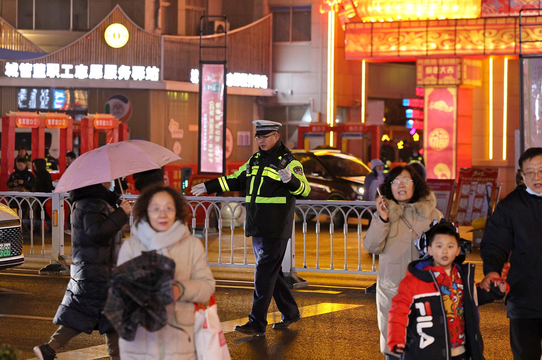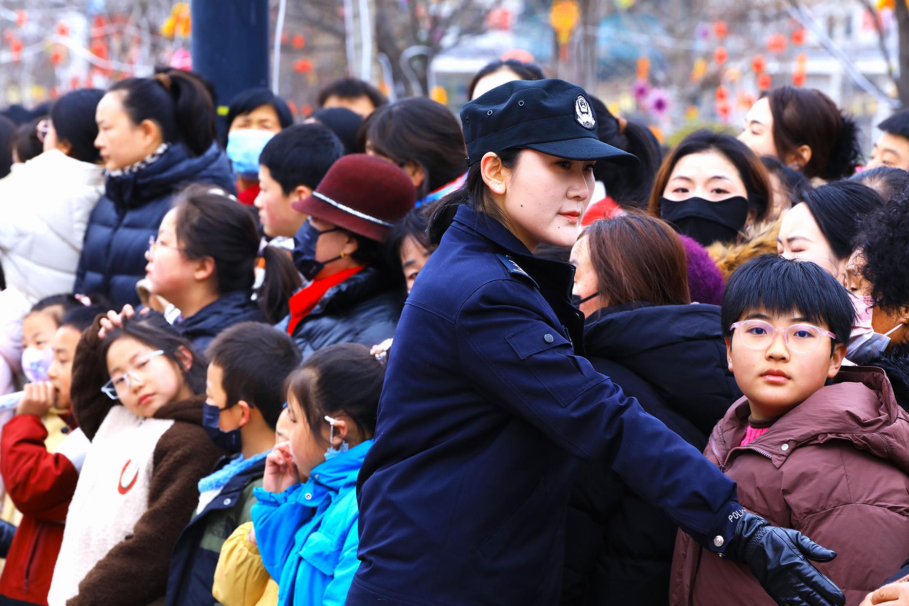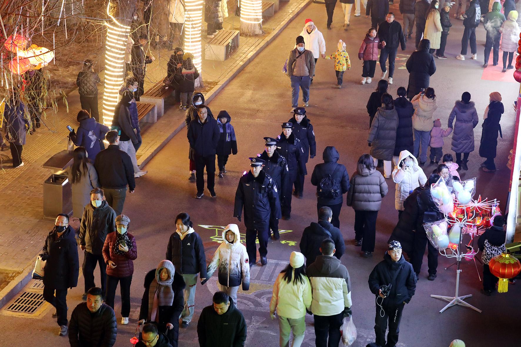2月11日,山東省棗莊市公安局市中分局交通警察大隊組織民輔警在花燈會的主干道重點路段、路口設(shè)置臨時執(zhí)勤點,保障道路安全暢通和賞燈游玩的群眾出行安全。