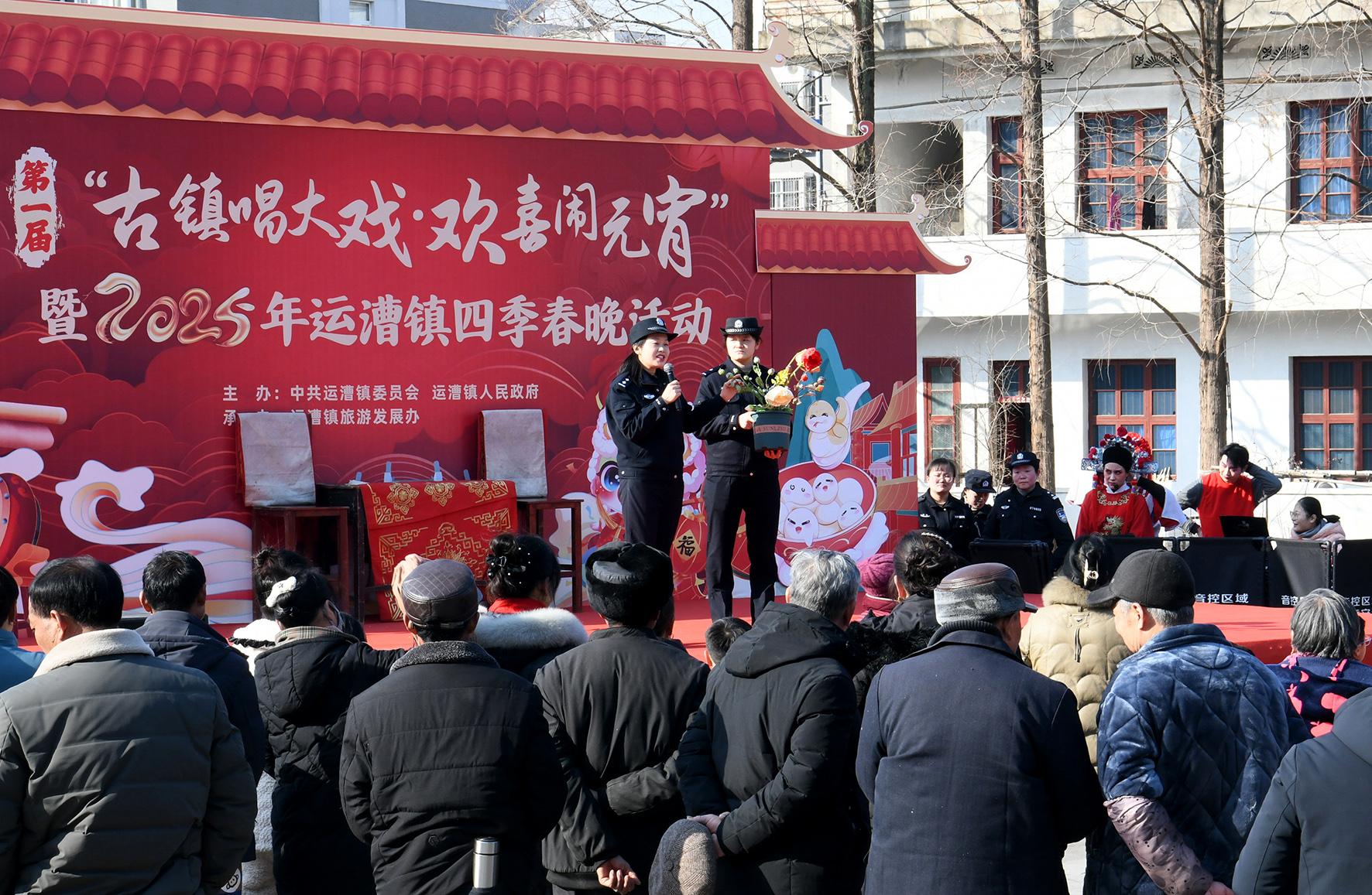 2月11日,安徽省馬鞍山市含山縣公安局聯(lián)合漕川社區(qū)開展“古鎮(zhèn)唱大戲·歡喜鬧元宵”普法宣傳活動。