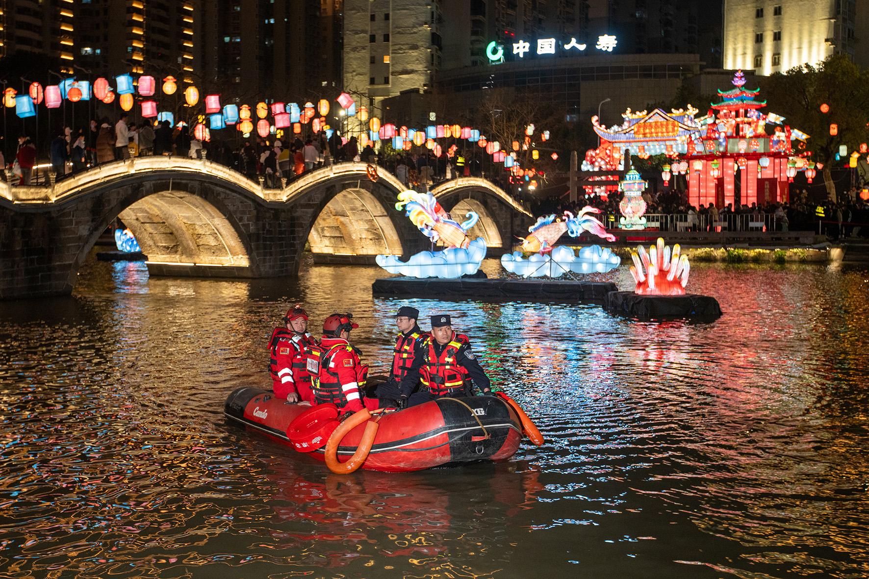 2月12日,浙江省臺州市黃巖區(qū)舉辦五洞橋“大過蛇年”燈會。黃巖公安分局周密部署,全力做好燈會安保工作,確保市民度過一個平安喜樂的元宵佳節(jié)。