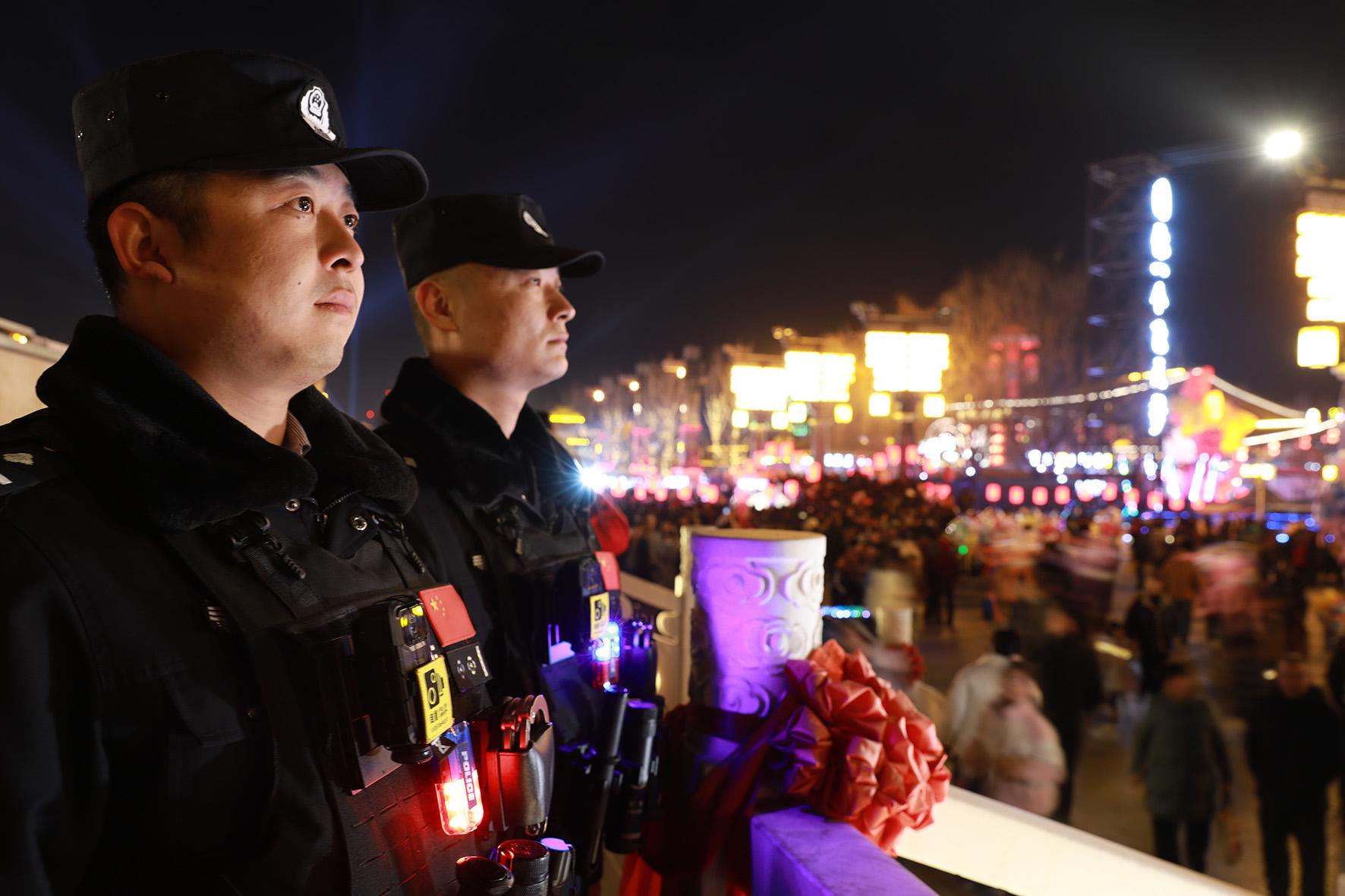2月12日晚,陜西省富平縣中華郡舉行大型篝火晚會表演。富平縣公安局全力做好安保工作,確保群眾度過一個平安祥和的元宵佳節(jié)。