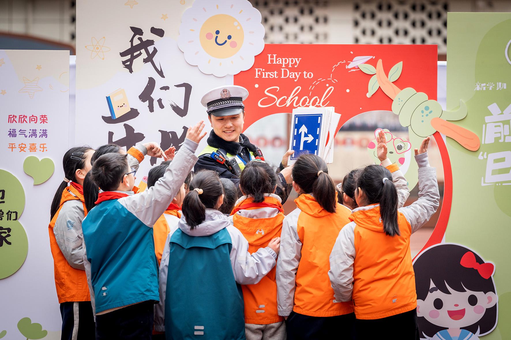2月16日,四川省綿陽市公安局交警支隊直屬一大隊組織警力走進轄區(qū)成綿路小學,為同學們準備了2025年度春季開學“第一課”,民警以互動問答的方式為學生講解交通安全知識。