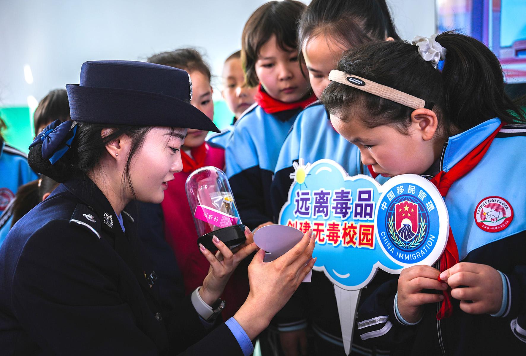 2月17日,新疆阿勒泰邊境管理支隊恰勒什海邊境派出所走進薩爾吾楞牧業(yè)寄宿學校開展“開學禁毒第一課”活動。