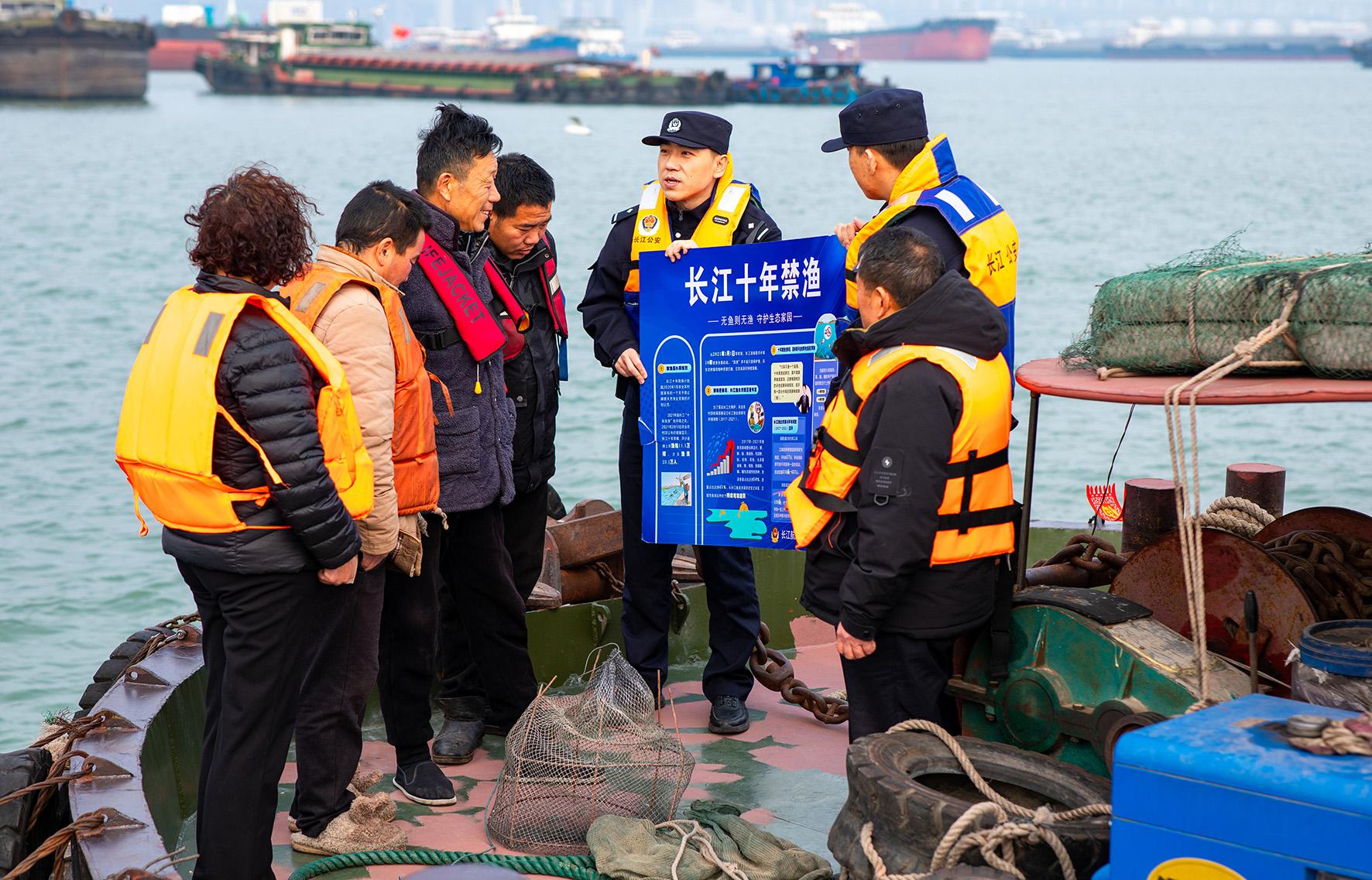 2月23日,長江航運公安局鎮(zhèn)江分局鎮(zhèn)江派出所民警在長江江蘇鎮(zhèn)江段水域開展水上巡邏,向船民開展長江十年禁捕宣傳。