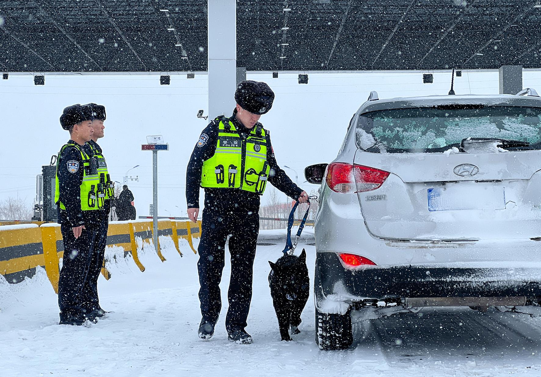 3月12日,新疆出入境邊防檢查總站阿勒泰邊境管理支隊(duì)塘巴勒邊境檢查站民警在風(fēng)雪中堅(jiān)守崗位,嚴(yán)格落實(shí)進(jìn)出邊境管理區(qū)24小時(shí)雙向查緝制度,做到“不漏一車、不漏一人”。