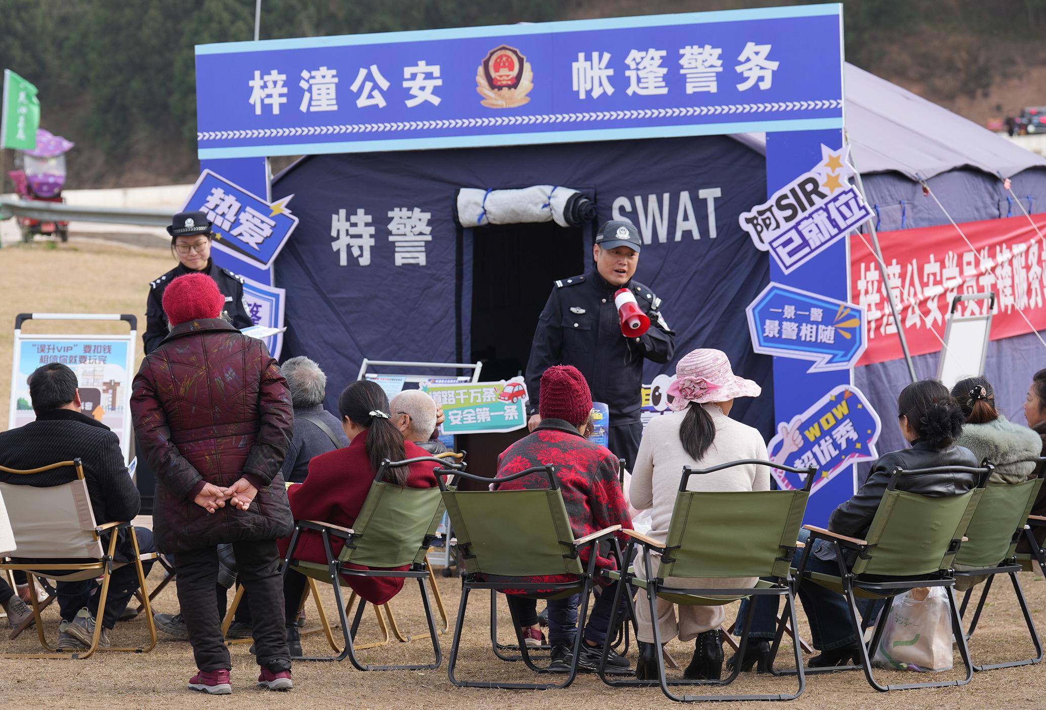 近期,四川省綿陽(yáng)市梓潼縣瑪瑙鎮(zhèn)迎來了油菜花海的最佳觀賞期。梓潼縣公安局推出“帳篷警務(wù)室”模式,為游客打造安全有序的旅游環(huán)境。