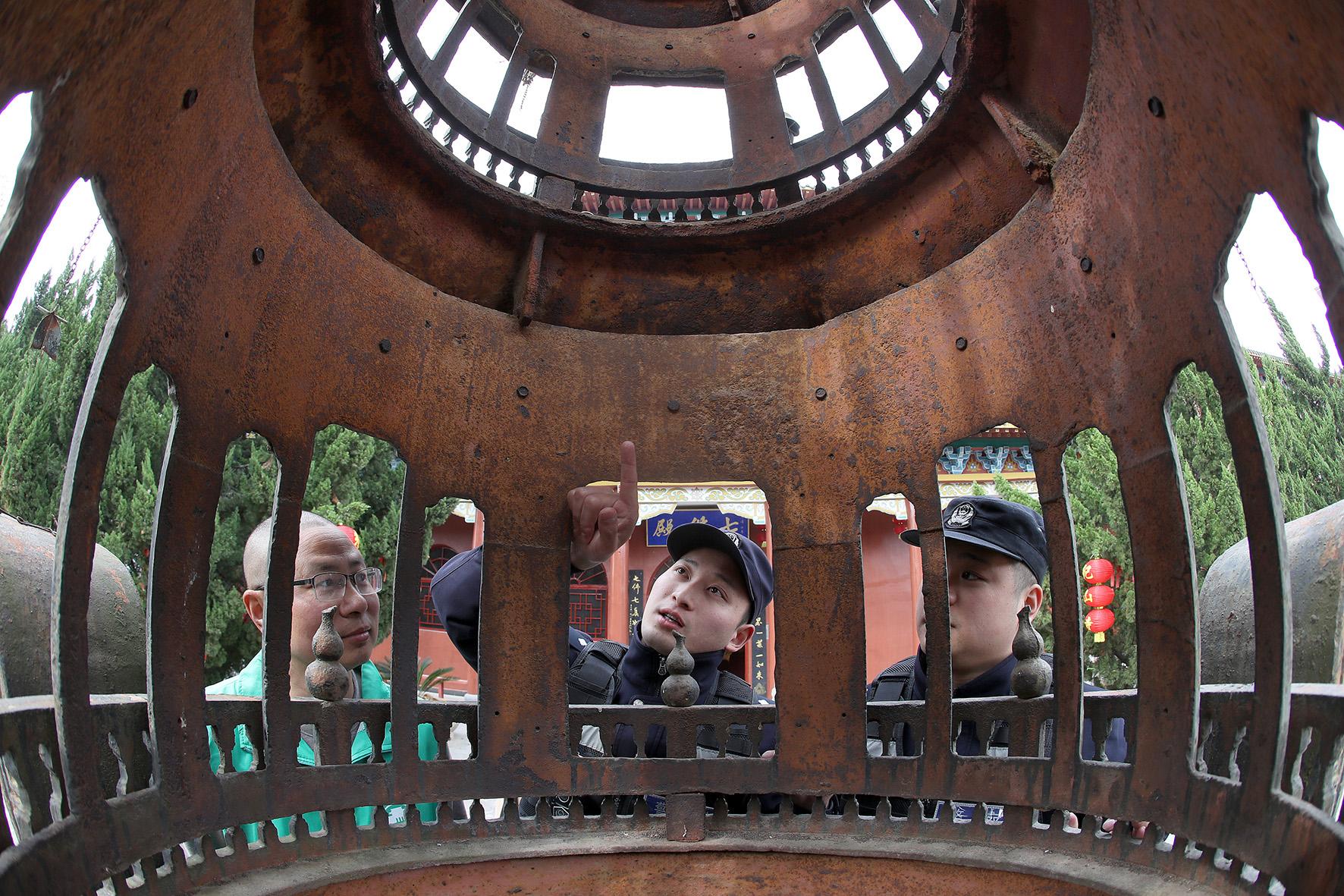 圖為3月17日,荊門市博物館工作人員與沙洋縣公安局紀(jì)山派出所民警,對(duì)始建于隋朝的紀(jì)山寺開(kāi)展系統(tǒng)性安全隱患排查。