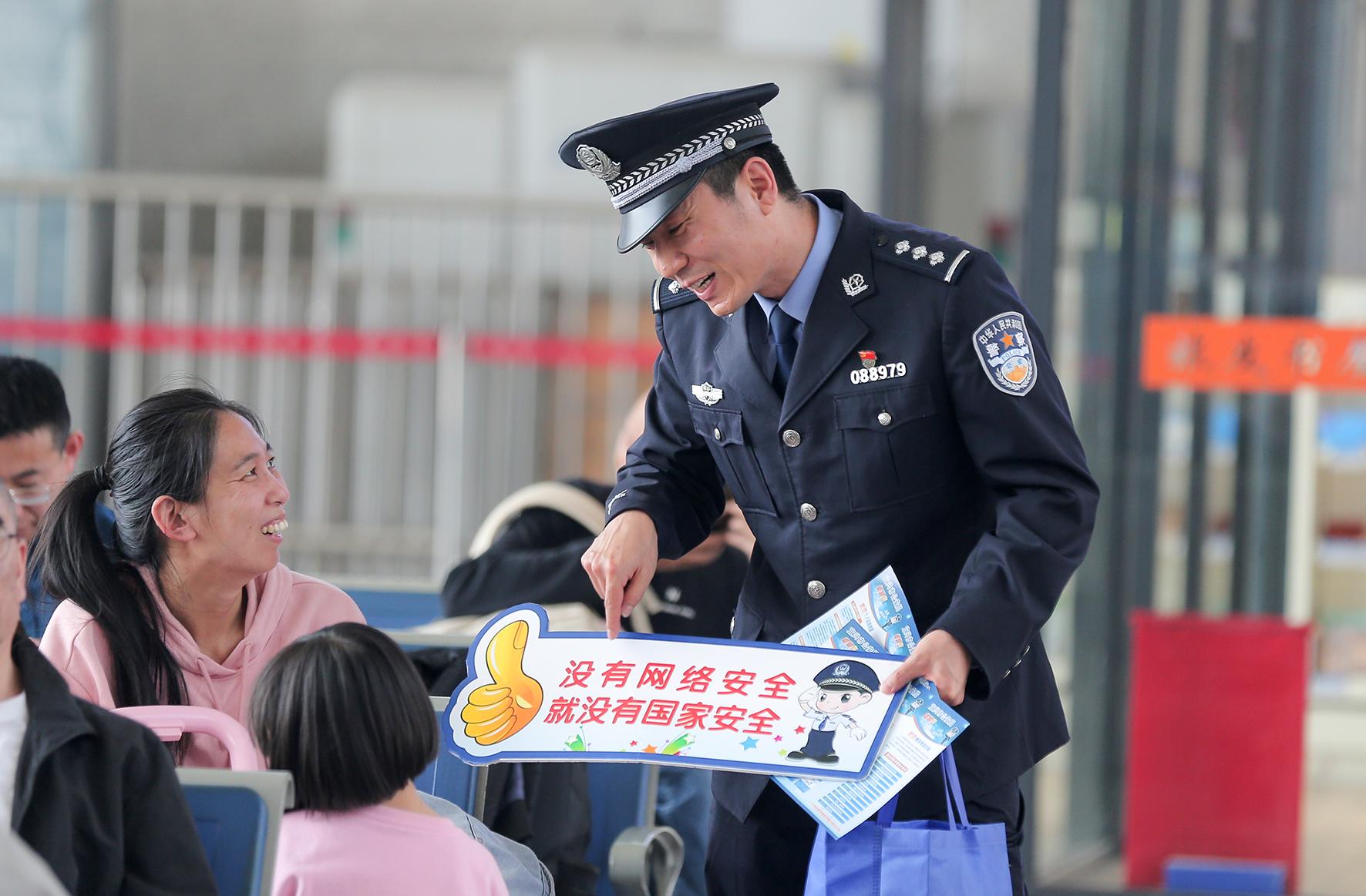 4月9日,江蘇省宜興市公安局網(wǎng)安大隊會同南京鐵路公安處宜興站派出所在高鐵宜興站以“共筑網(wǎng)絡(luò)安全 守護(hù)國家安全”為主題開展宣傳活動。