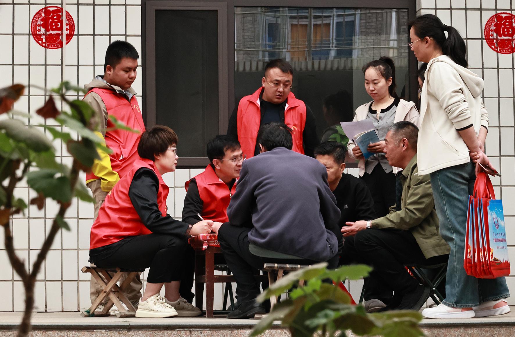 4月11日,山西省運城市新絳縣司法局法治服務(wù)小分隊隊員在汾河岸畔的橫橋鎮(zhèn)中村北為群眾解答法律問題。