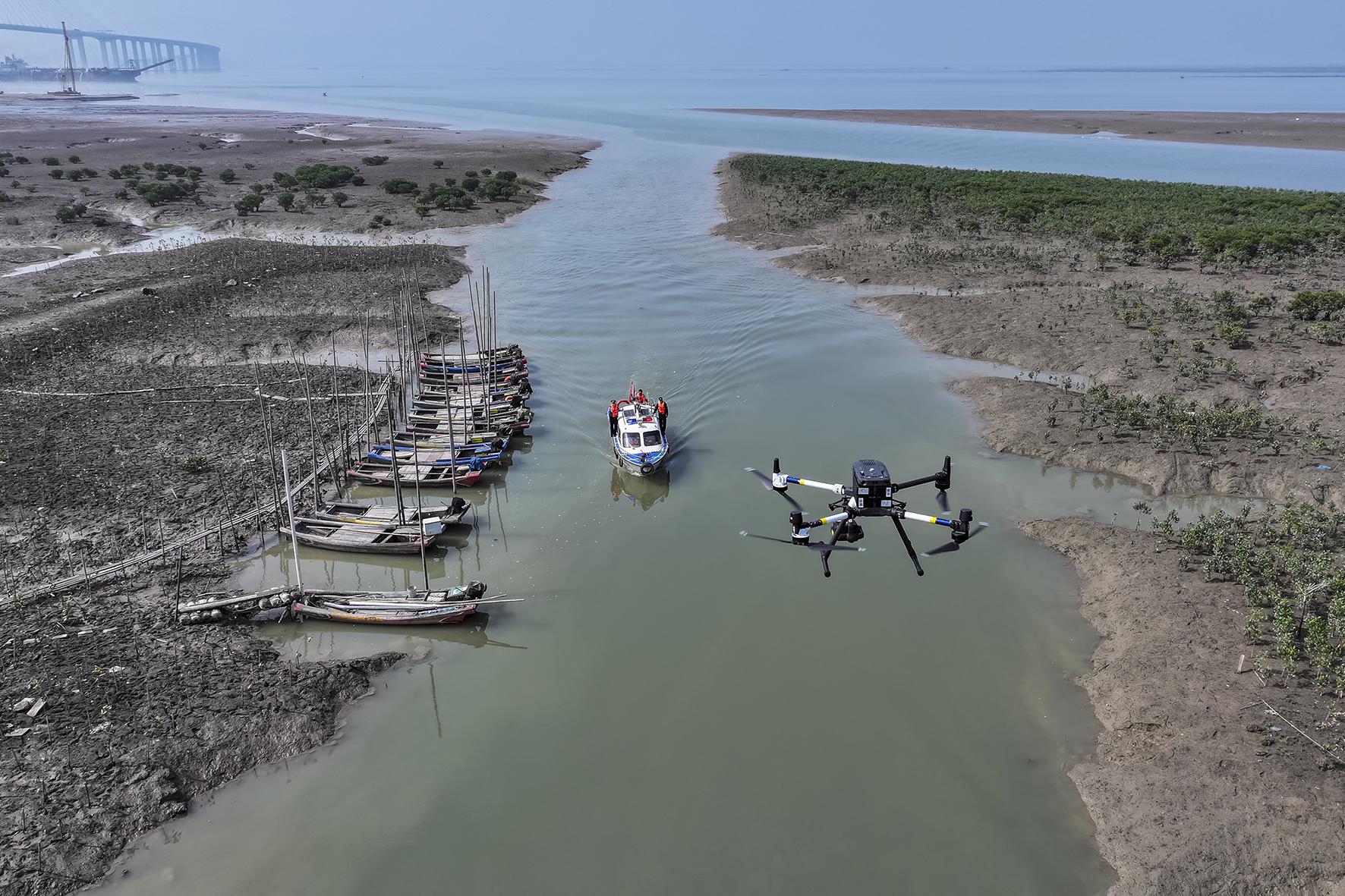 4月22日,福建省漳州市公安局臺(tái)商投資區(qū)分局民警和聯(lián)勤單位人員,運(yùn)用巡邏艇+無人機(jī)等方式,對(duì)九龍江入海口北岸濕地生態(tài)進(jìn)行安全巡查。