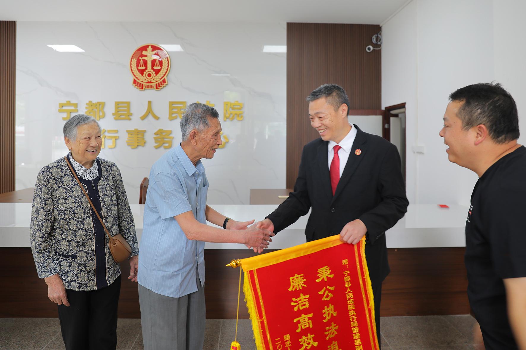 “十年了,這筆錢終于回來了,真的太感謝你們了!”5月7日,93歲的郭某來到江西省寧都縣人民法院,將一面印有“秉公執(zhí)法追欠款 廉潔高效護民權(quán)”的錦旗送到執(zhí)行局干警手中。