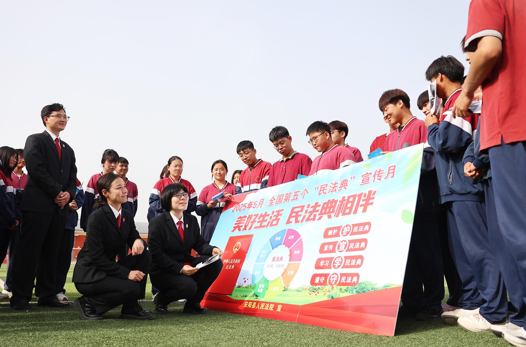 5月7日,河南省安陽縣人民法院組織干警走進明博高級中學開展“民法典進校園”普法宣傳活動。