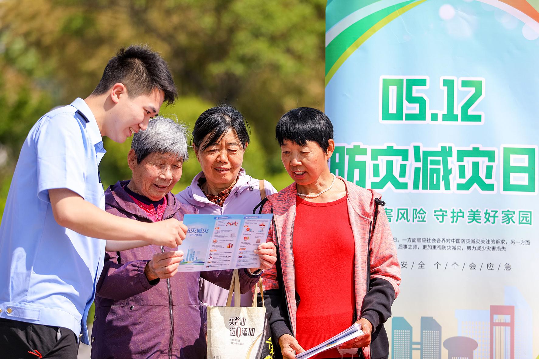 5月12日,在山東省青島市李滄區(qū)李滄文化公園舉辦的“全國(guó)防災(zāi)減災(zāi)日”集中宣傳活動(dòng)中,應(yīng)急工作人員向市民介紹防災(zāi)減災(zāi)知識(shí)。