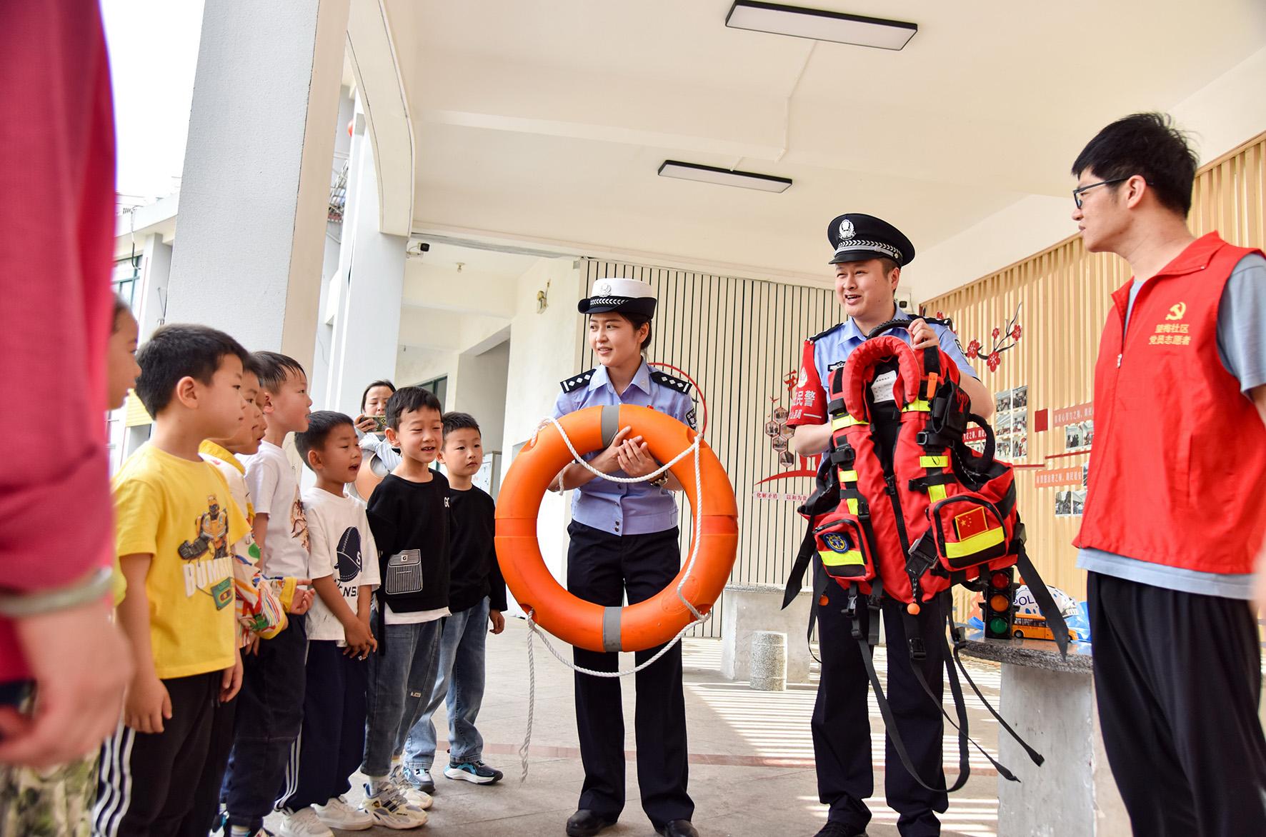 圖為民警向孩子們宣講防溺水知識(shí)。