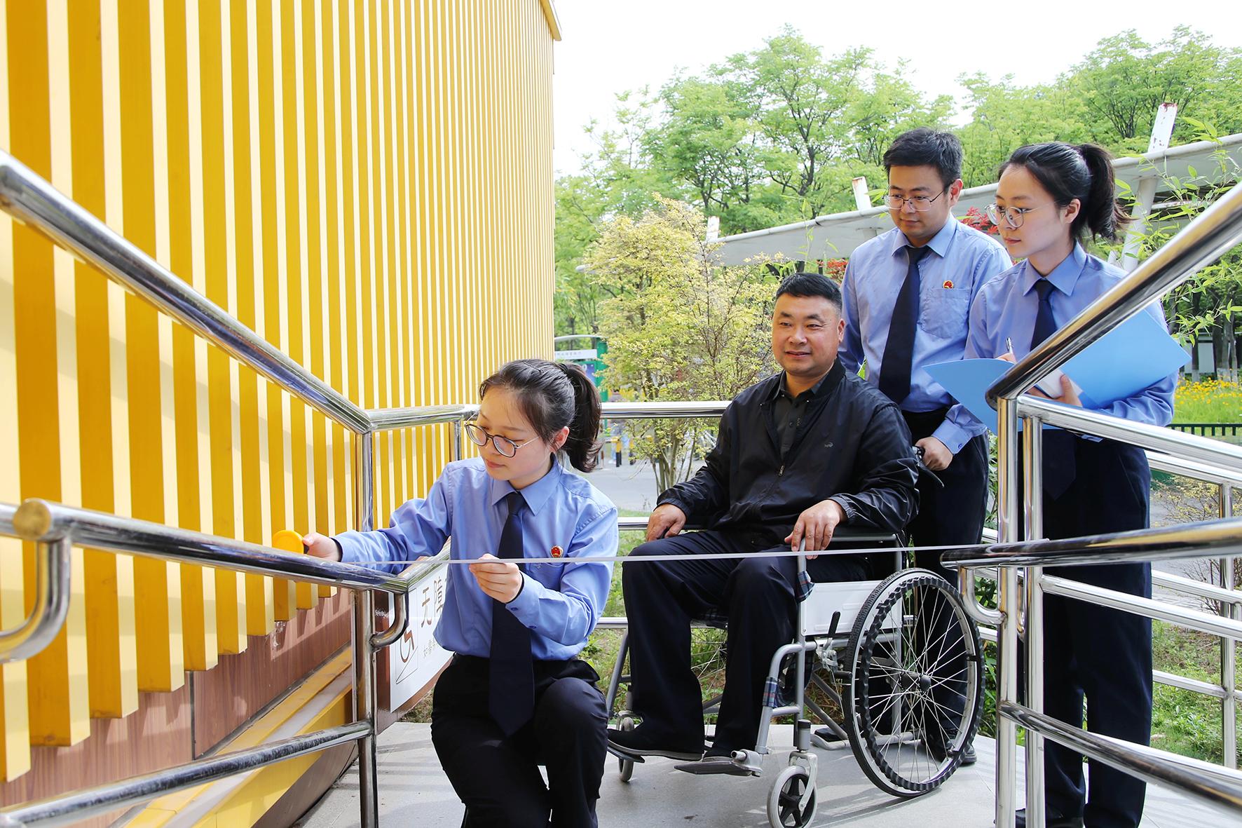 5月13日,在第35個全國助殘日前夕,江蘇省睢寧縣檢察院公益訴訟辦案團(tuán)隊開展無障礙環(huán)境建設(shè)專項監(jiān)督行動,并陪同殘障人士體驗升級改造后的無障礙環(huán)境設(shè)施。