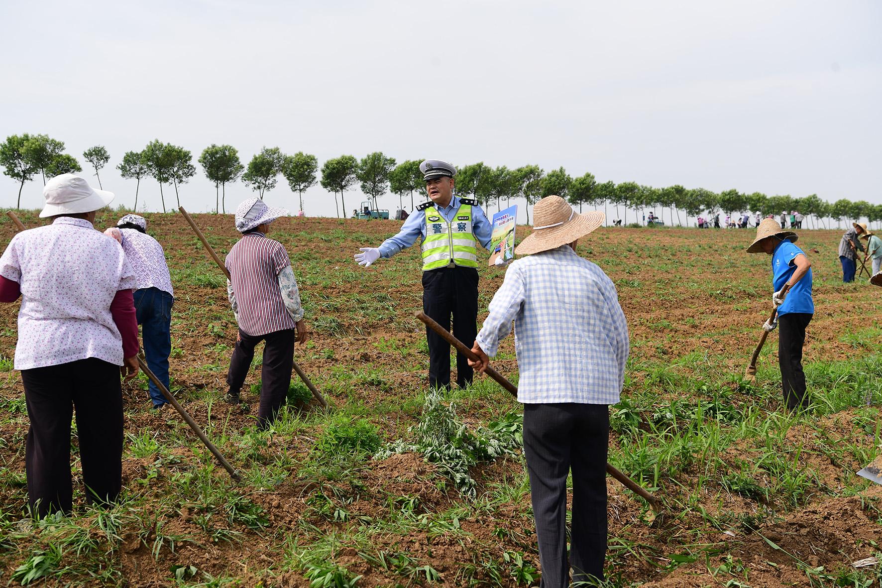 5月17日,安徽省巢湖市公安局交警大隊民警走進(jìn)田間地頭,向從事夏種的群眾開展交通安全宣傳。