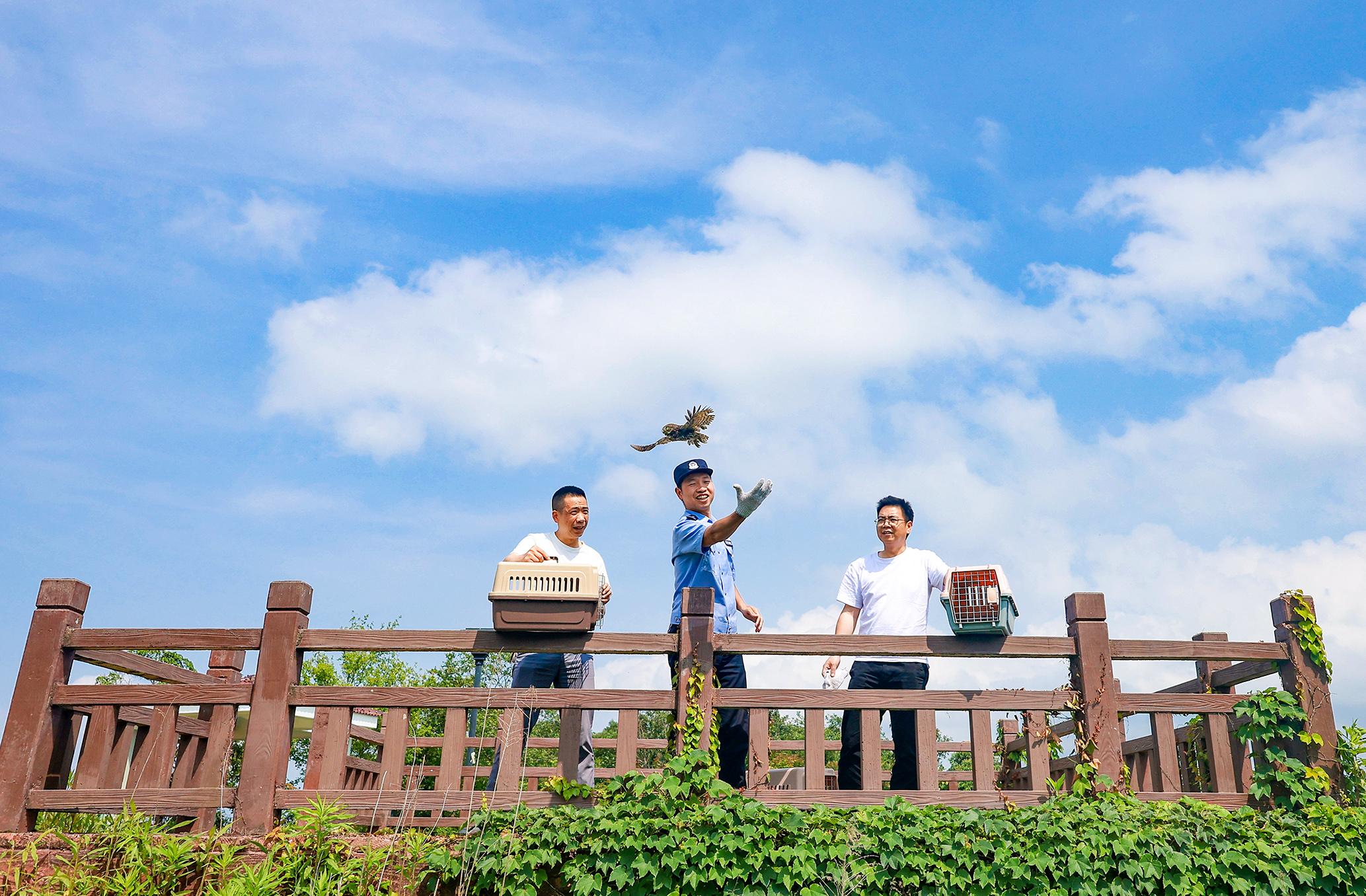 5月27日,浙江省三門縣公安局聯合三門縣自然資源和規(guī)劃局在望海樓,將10只收容救護的國家二級保護動物斑頭鵂鹠放歸大自然。