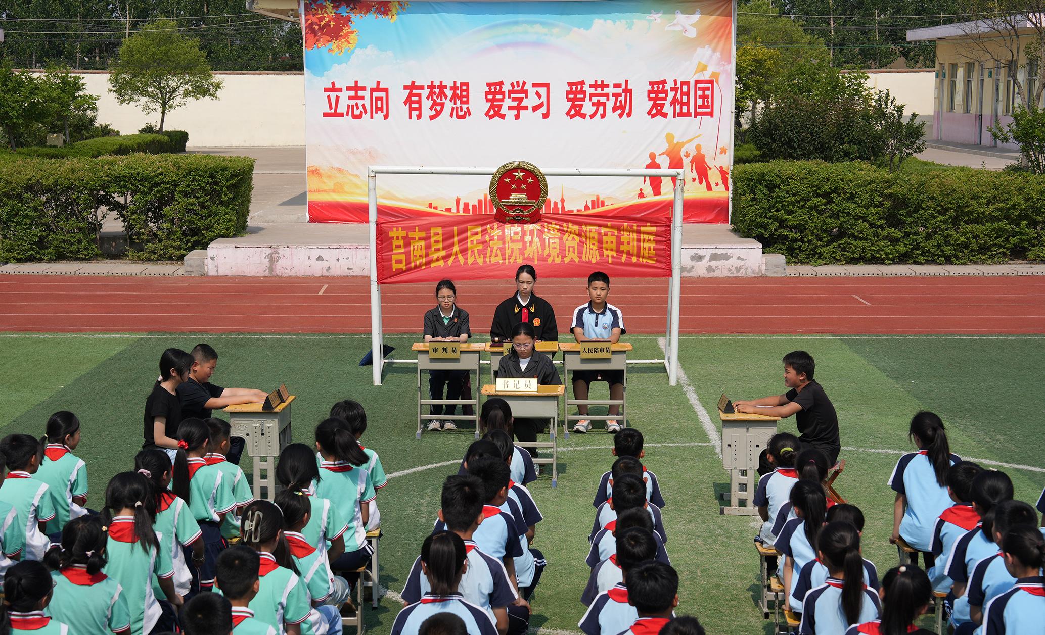5月27日,山東省莒南縣人民法院將模擬法庭搬到道口鎮(zhèn)嚴(yán)家莊村小學(xué),給同學(xué)們上了一堂沉浸式普法課。