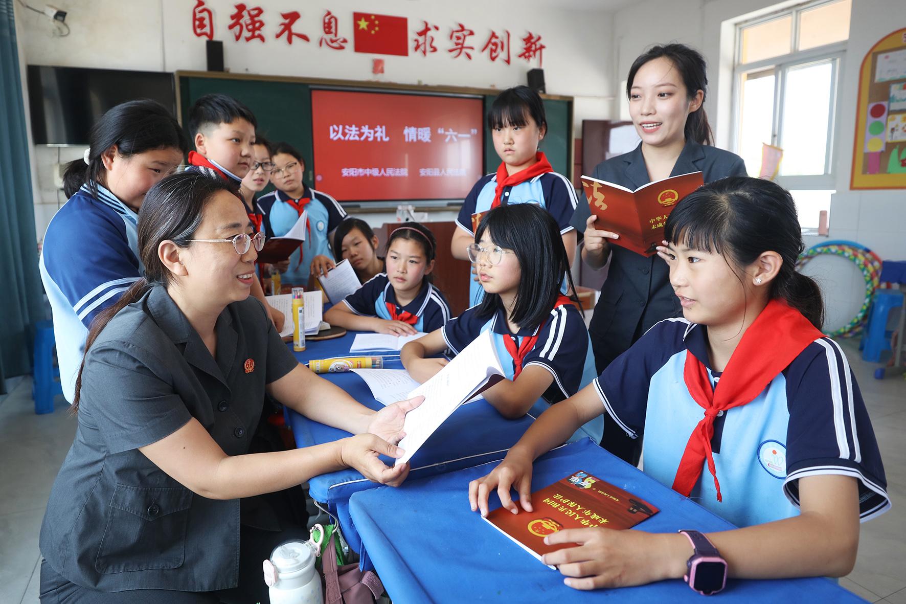 5月29日,河南省安陽市中級人民法院聯(lián)合安陽縣人民法院開展“以法為禮 情暖六一”法治進(jìn)校園活動(dòng)。