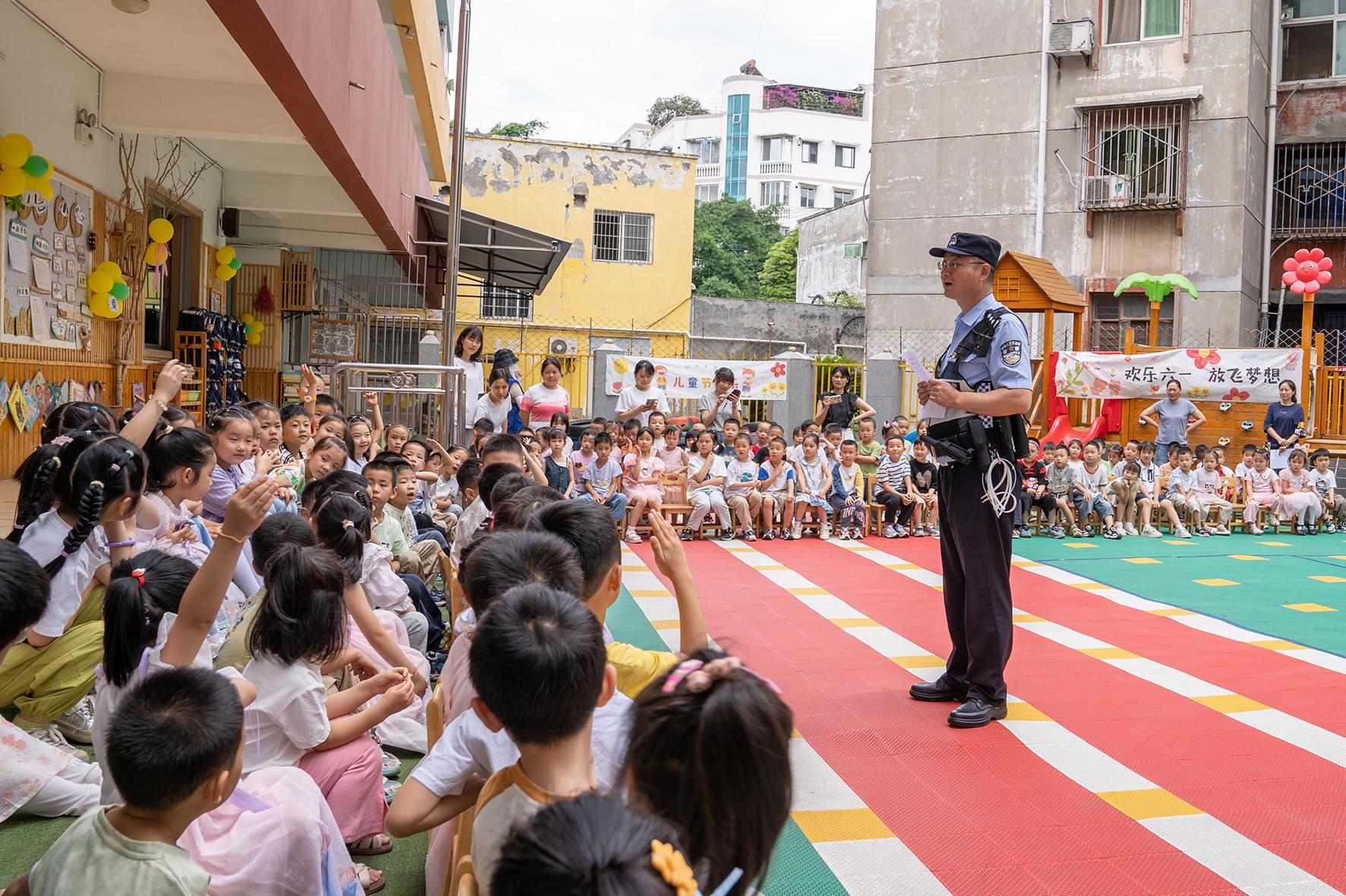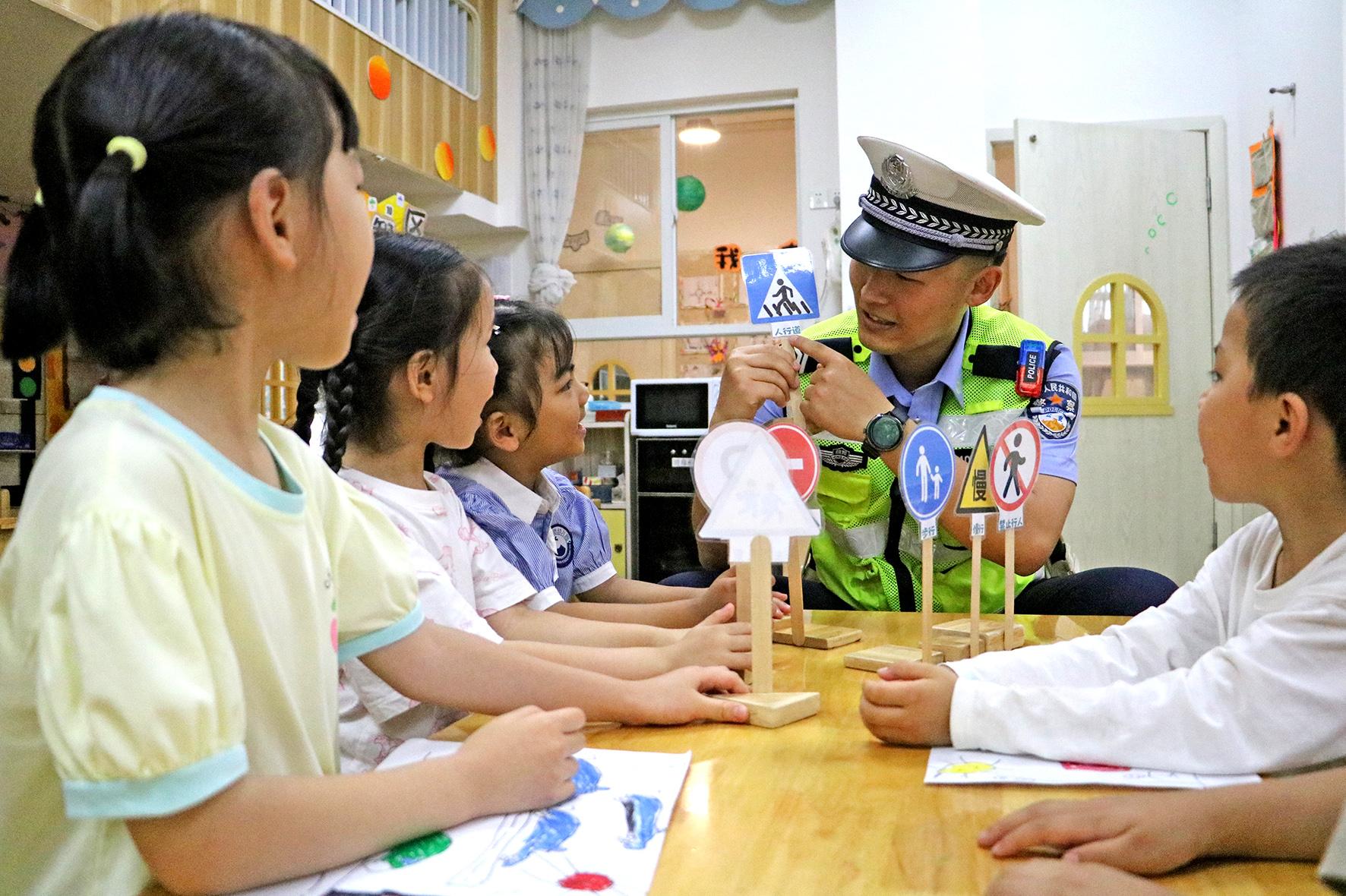 5月28日,四川省綿陽市公安局交警支隊(duì)直屬一大隊(duì)走進(jìn)轄區(qū)幼兒園,向小朋友講解“知危險(xiǎn) 會(huì)避險(xiǎn)”知識,進(jìn)一步增強(qiáng)交通安全意識。