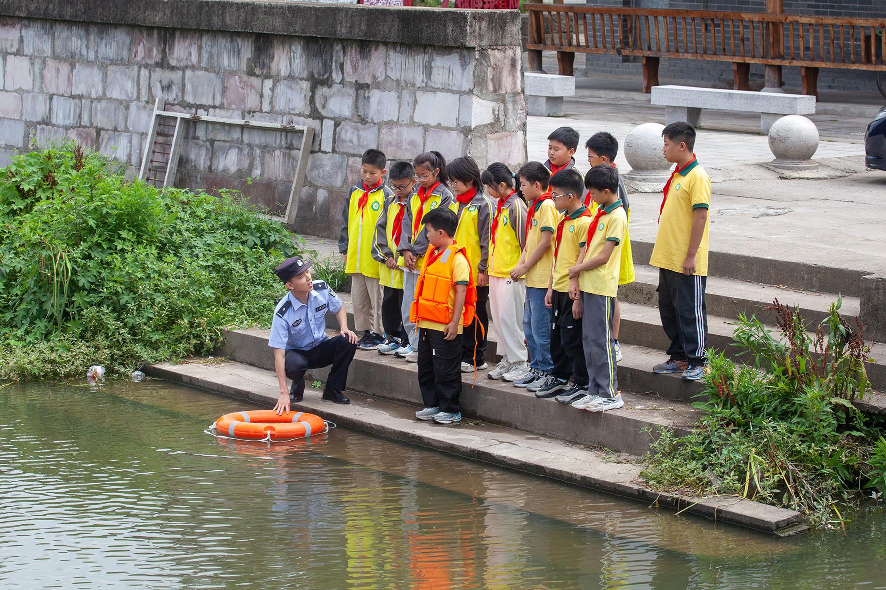 6月5日,浙江省臺(tái)州市公安局黃巖分局城東派出所民警來(lái)到頭陀小學(xué),向課外活動(dòng)的小學(xué)生們開展防溺水宣傳。