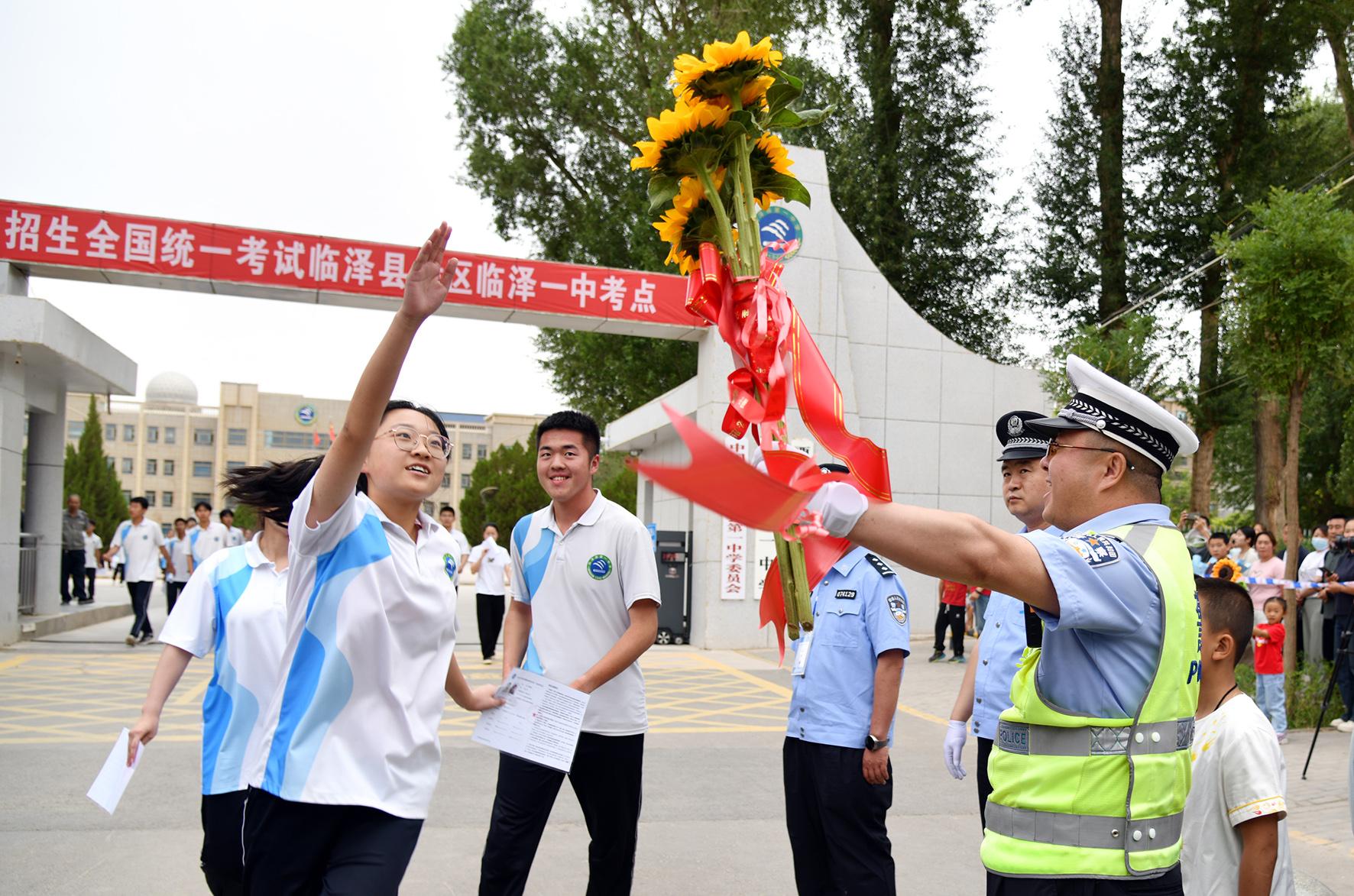 6月8日,山西省翼城縣公安局北關(guān)派出所民警暖心護(hù)送行動不便的考生進(jìn)考場。