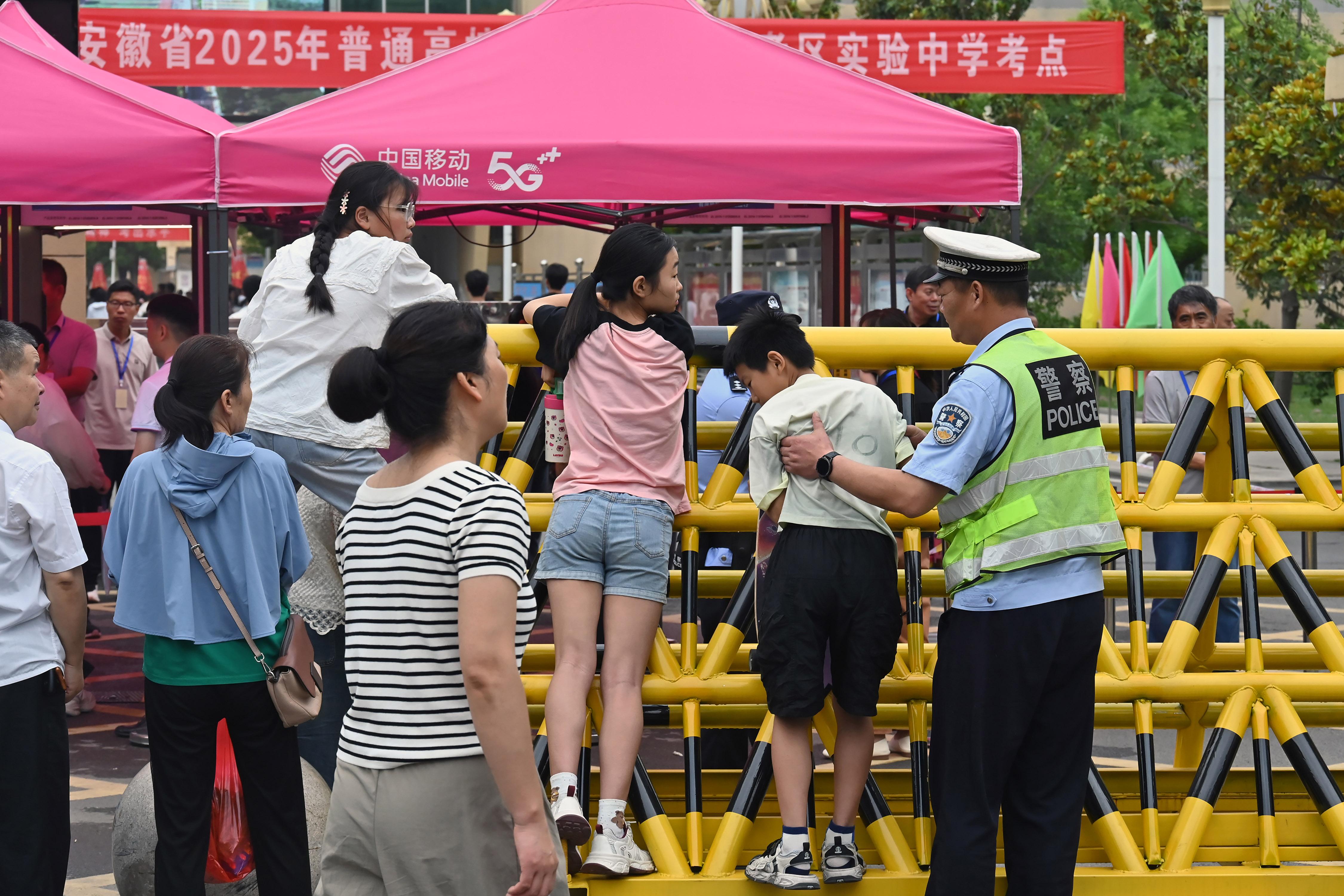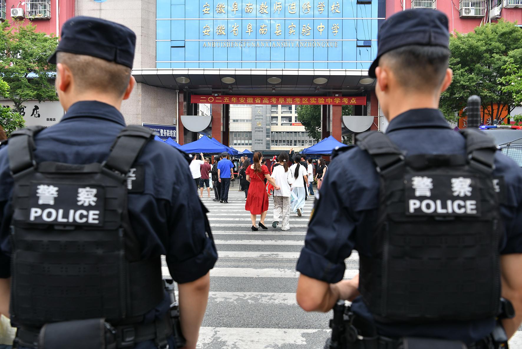 6月7日,安徽省馬鞍山市和縣公安局民警在和縣第一中學(xué)考點維護(hù)秩序。