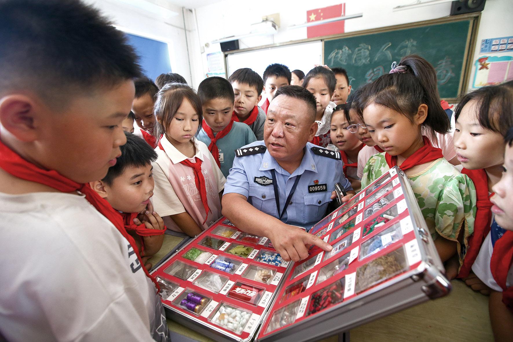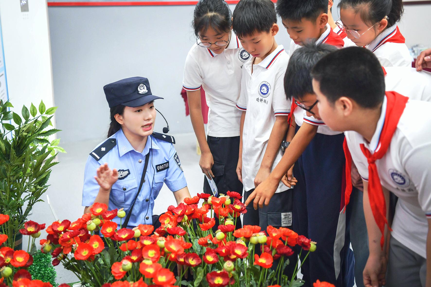 6月23日,安徽省涇縣公安局民警在涇縣毒品預(yù)防教育基地為學(xué)生講解禁毒知識(shí)。