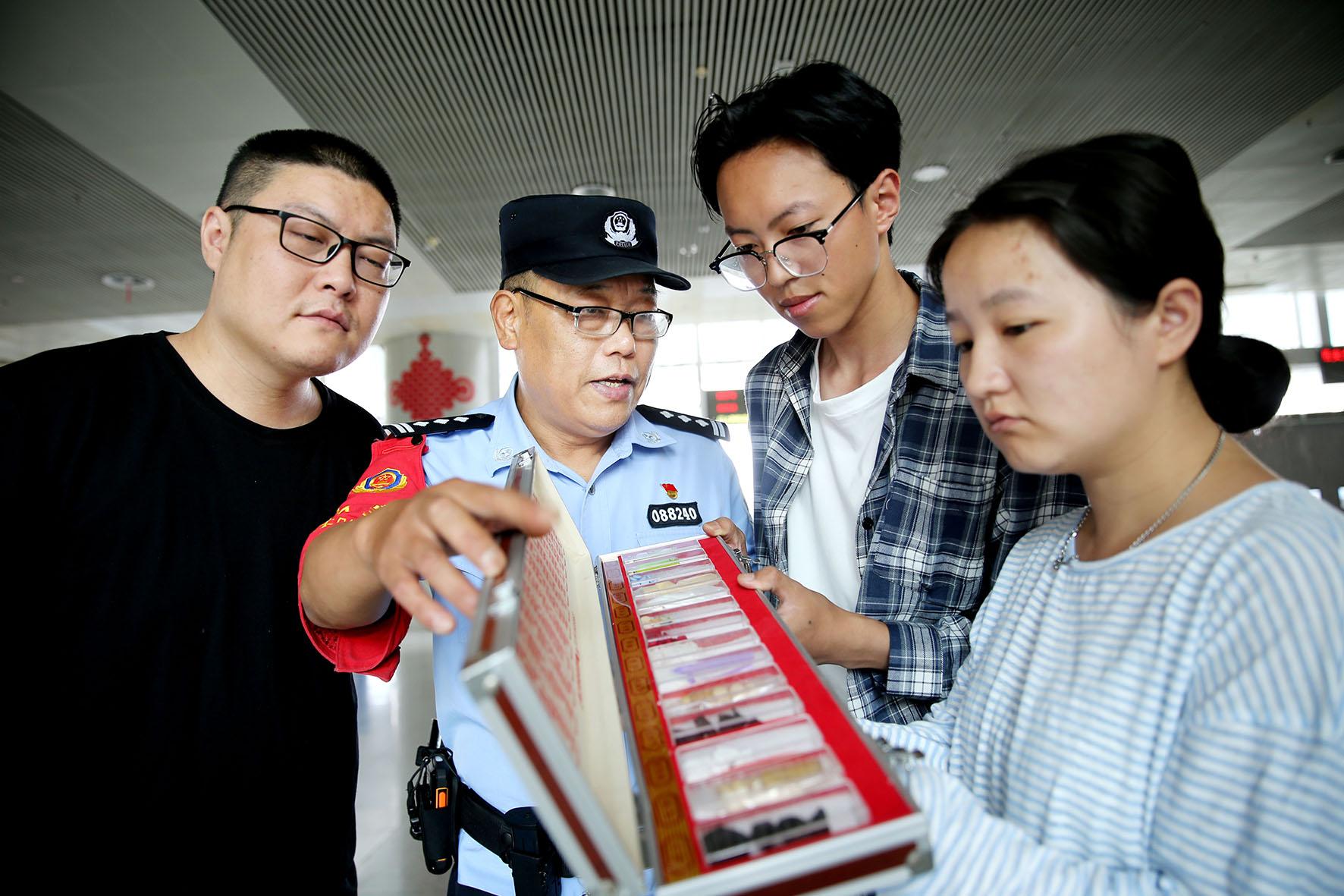 6月25日,徐州鐵路公安處連云港東站民警在候車大廳向旅客宣傳禁毒知識(shí)。