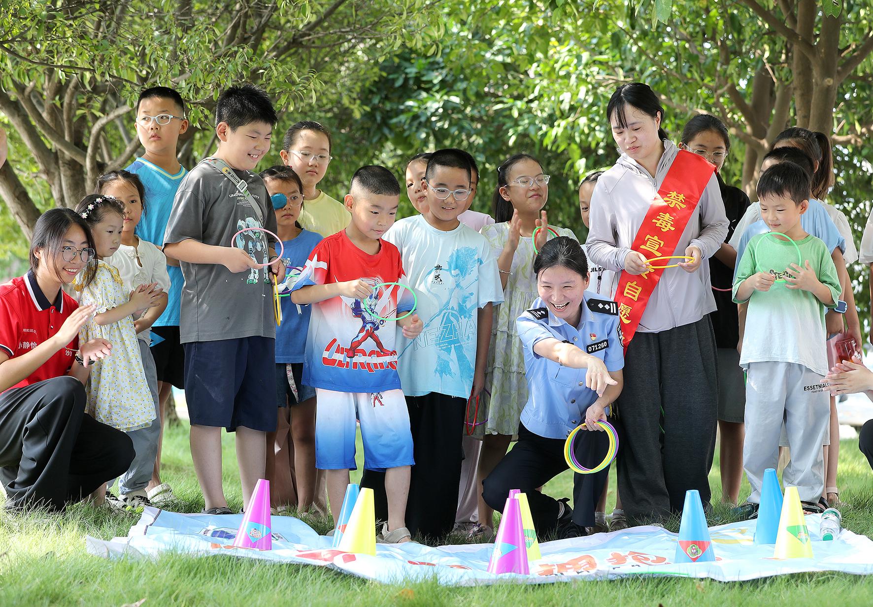 7月28日,湖北省荊門市沙洋縣公安局民警走進(jìn)洪嶺社區(qū)“愛心托管班”,以趣味互動游戲?yàn)檩d體,向青少年開展防溺水、預(yù)防校園欺凌及禁毒知識宣傳,讓孩子們在歡樂中提升自我保護(hù)能力。