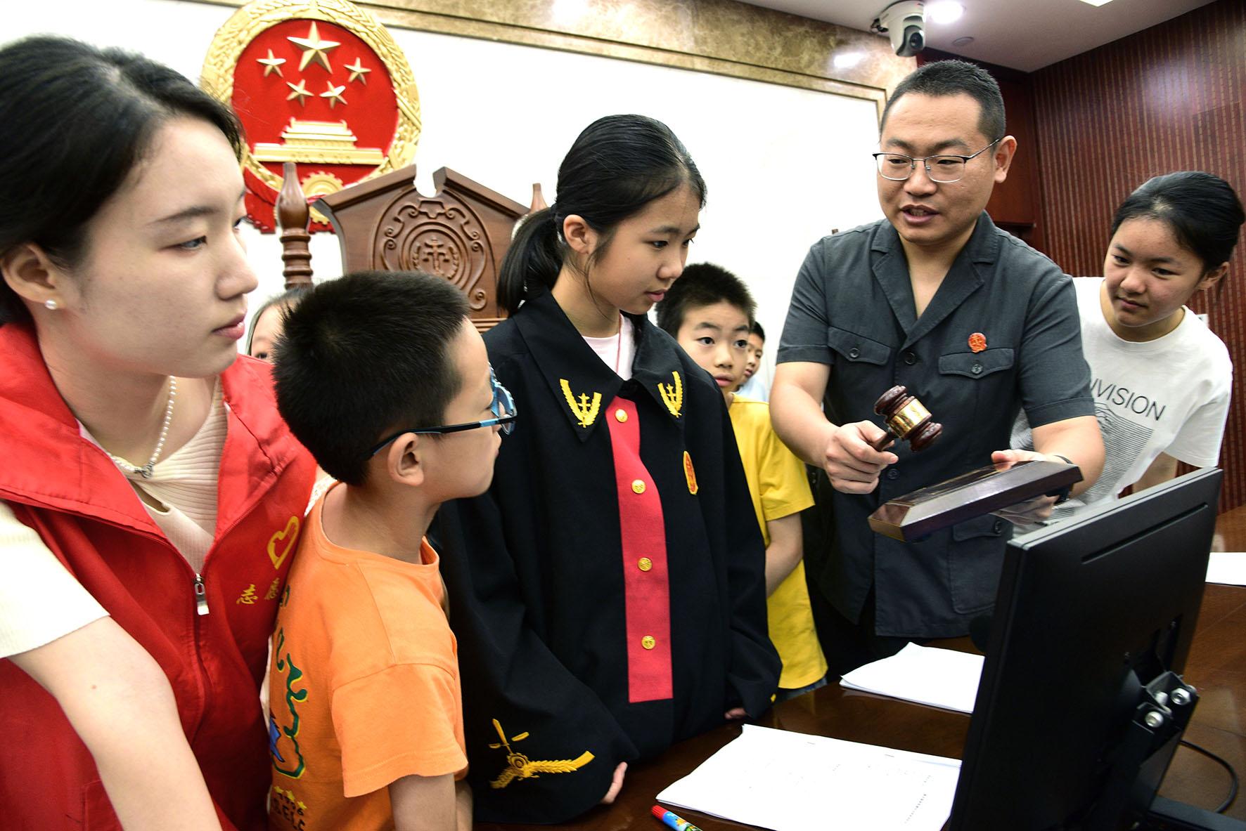 8月7日,江蘇省鎮(zhèn)江市七里甸司法所聯(lián)合江蘇大學(xué)法律援助中心志愿者組織中小學(xué)生走進(jìn)潤州區(qū)人民法院金山湖法庭,開展“今天我是小法官——模擬法庭學(xué)法”活動。
