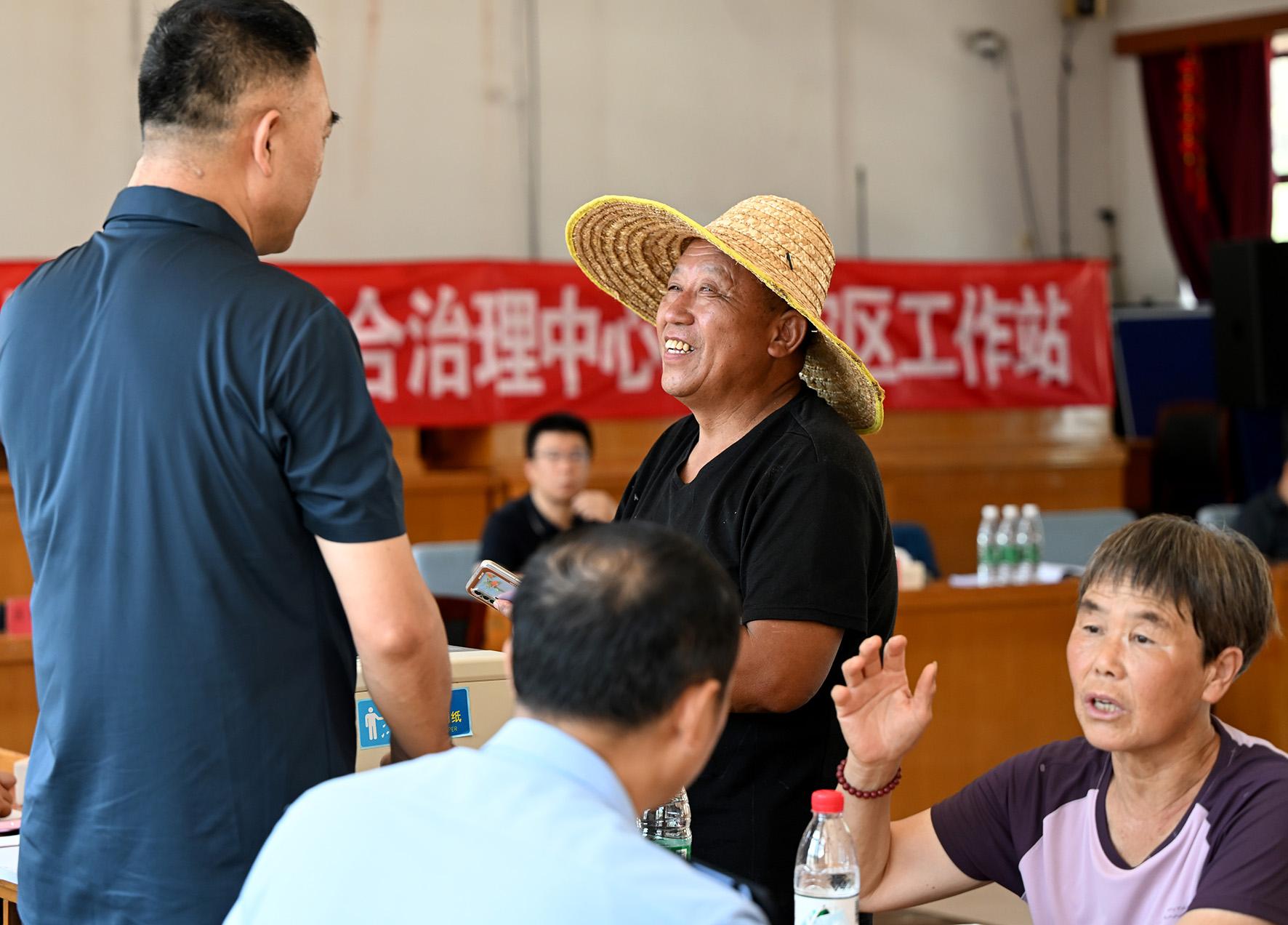 8月6日,臨時(shí)“綜治中心”秩序井然,懷柔區(qū)人民法院、北京市公安局懷柔分局、懷柔區(qū)司法局、懷柔區(qū)農(nóng)業(yè)農(nóng)村局等職能部門(mén)窗口的工作人員都耐心回應(yīng)著村民的每一個(gè)訴求。