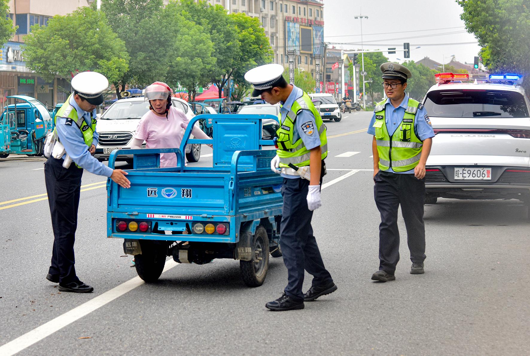 8月13日,安徽省馬鞍山市含山縣公安局交管大隊(duì)清溪中隊(duì)組織民警在轄區(qū)主要路口、車流量較大路段,對(duì)電動(dòng)車騎乘人員未佩戴安全頭盔、不按規(guī)定車道行駛、違規(guī)安裝車棚等交通違法行為進(jìn)行現(xiàn)場(chǎng)教育與勸導(dǎo)。