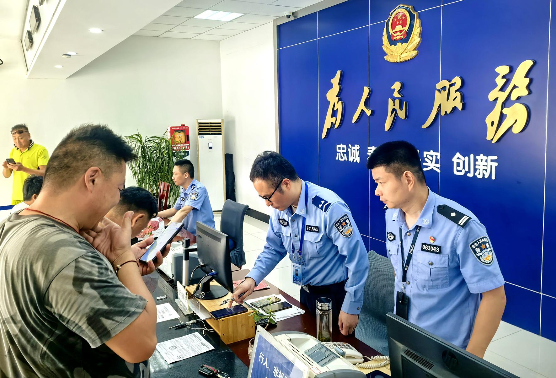 9月8日,江蘇省南通市公安局交通管理支隊(duì)四大隊(duì)民輔警在服務(wù)大廳為辦事群眾耐心細(xì)致服務(wù)。南通市公安局交通管理支隊(duì)四大隊(duì)主動(dòng)厘清辦事項(xiàng)目和辦事程序,推進(jìn)“網(wǎng)上辦、掌上辦”,實(shí)行一次性告知,避免群眾二次跑腿。