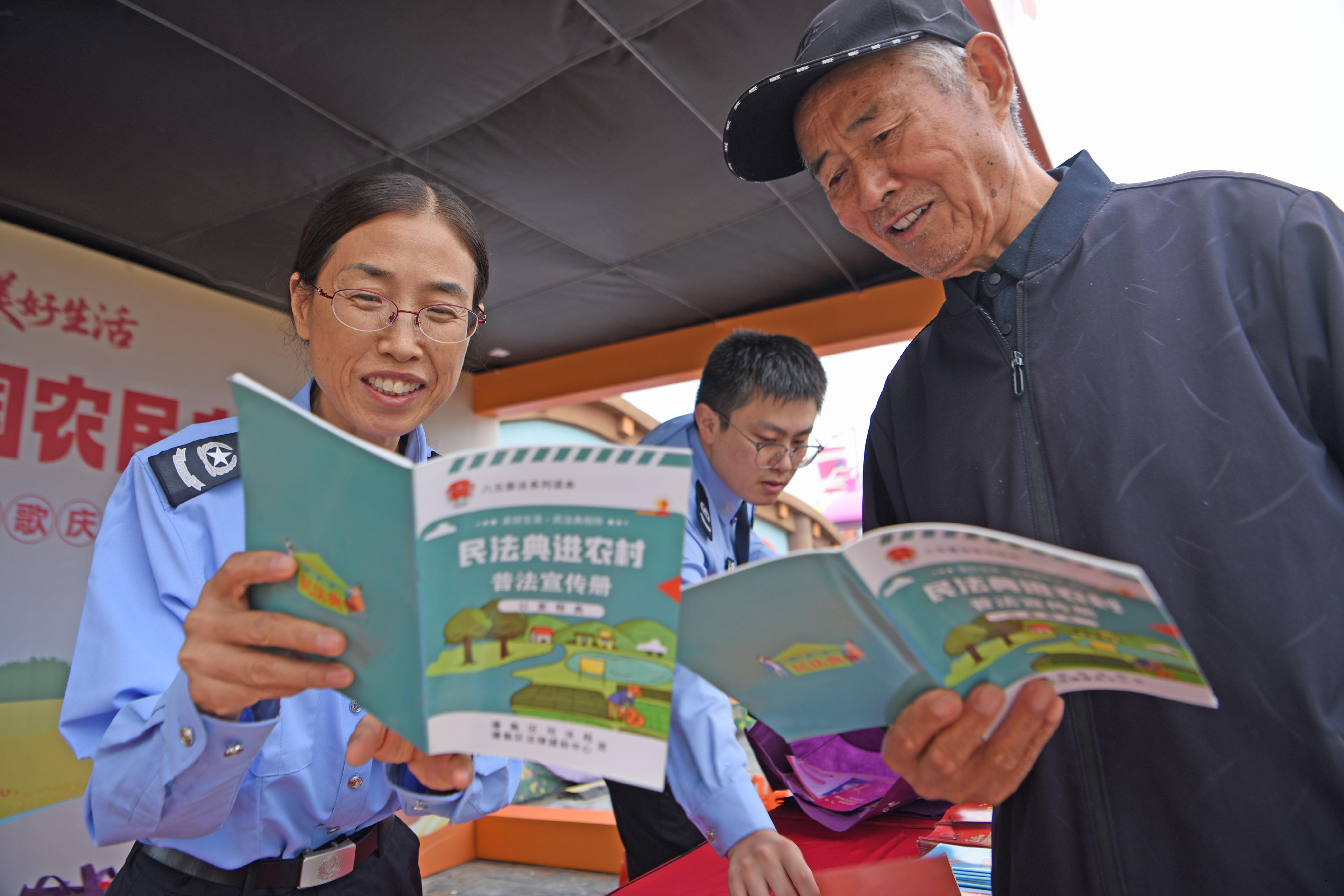 9月23日,安徽省淮南市潘集區(qū)司法局工作人員在淮南市2025年中國農(nóng)民豐收節(jié)活動現(xiàn)場向群眾普及涉農(nóng)法律法規(guī)。
