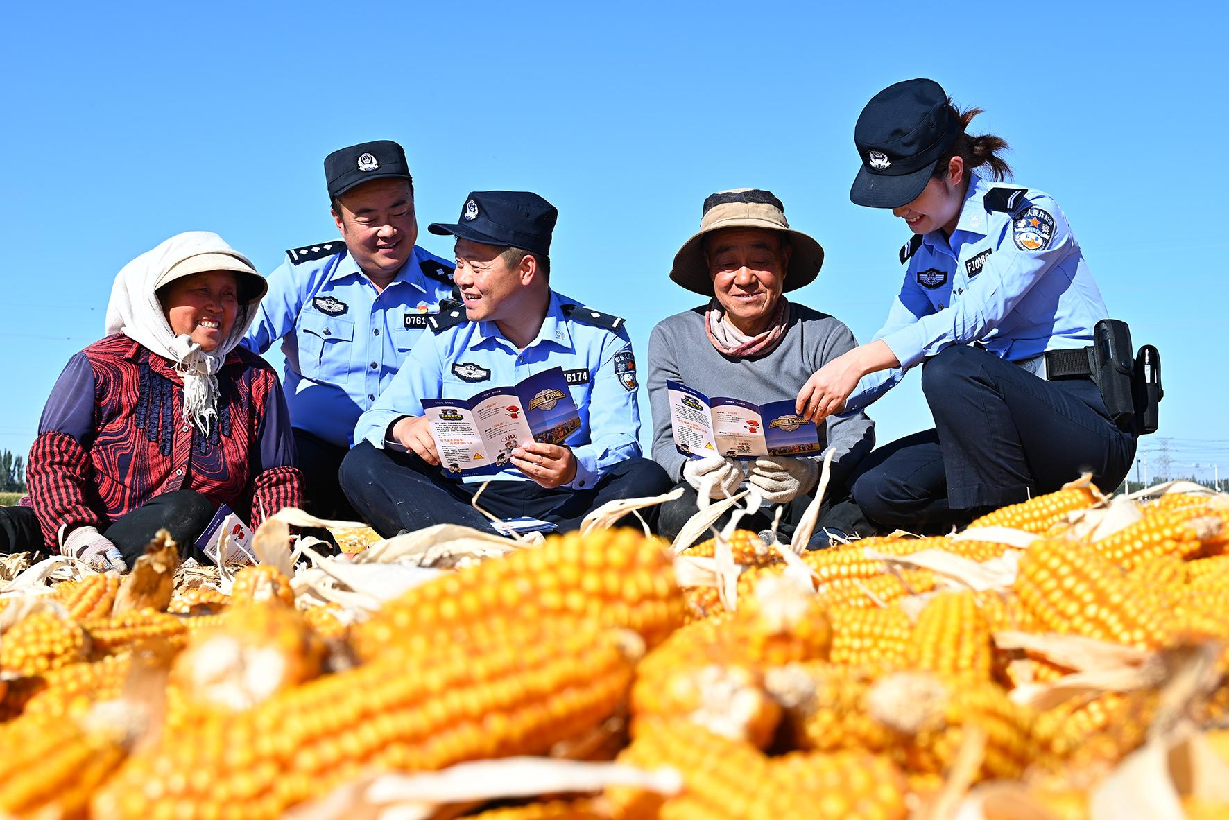 9月26日,甘肅省肅南縣公安局明花派出所“金秋助農(nóng)促豐收”志愿服務(wù)隊深入田間地頭巡邏守護(hù),服務(wù)群眾。