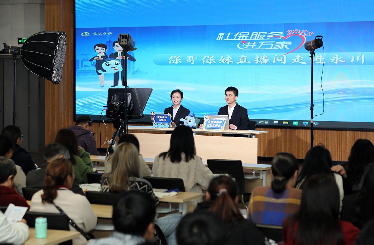 10月29日,重慶市社會(huì)保險(xiǎn)局在永川區(qū)中山路街道星光社區(qū)開展2025年“社保服務(wù)進(jìn)萬家”暨“保哥保妹直播間”走進(jìn)社區(qū)活動(dòng),通過“云端”互動(dòng)與現(xiàn)場(chǎng)咨詢相結(jié)合的方式,將社保政策與暖心服務(wù)送到群眾身邊。