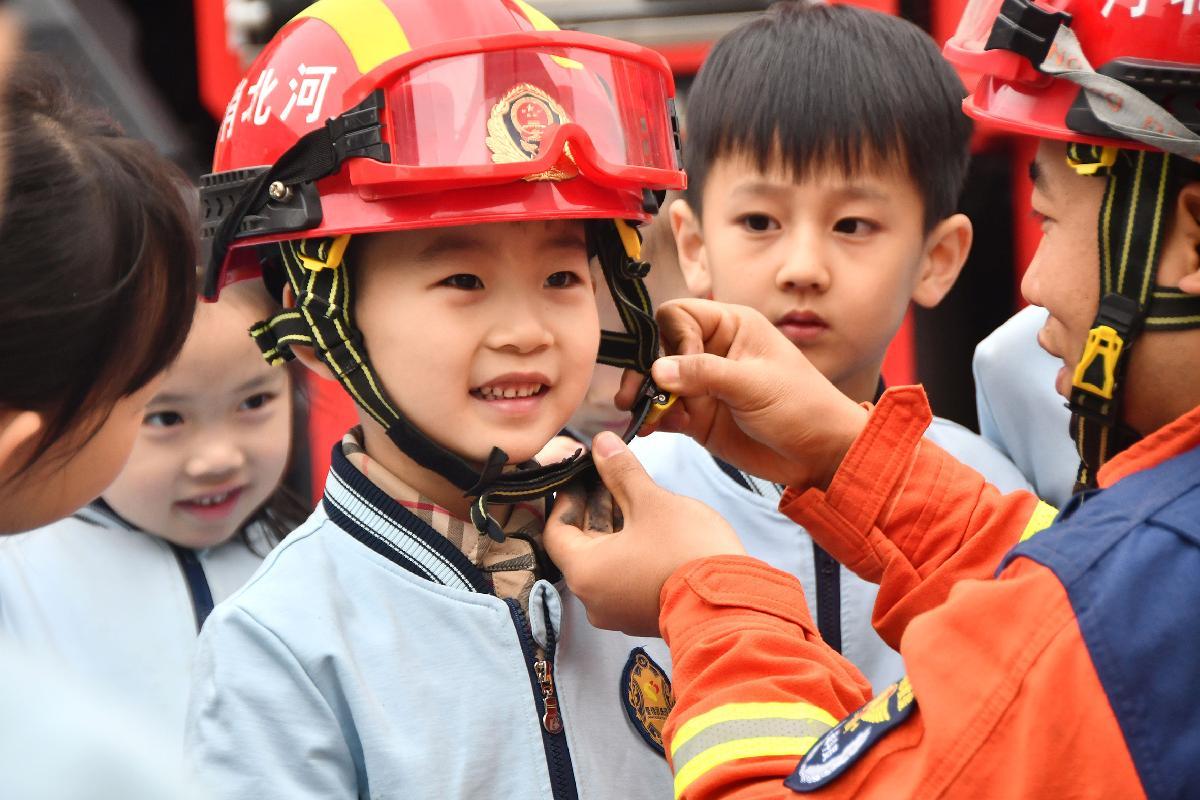 11月6日,在全國(guó)消防日來(lái)臨之際,河北省邯鄲市永年區(qū)消防救援大隊(duì)聯(lián)合轄區(qū)幼兒園開展“萌娃學(xué)消防 安全伴成長(zhǎng)”活動(dòng)。