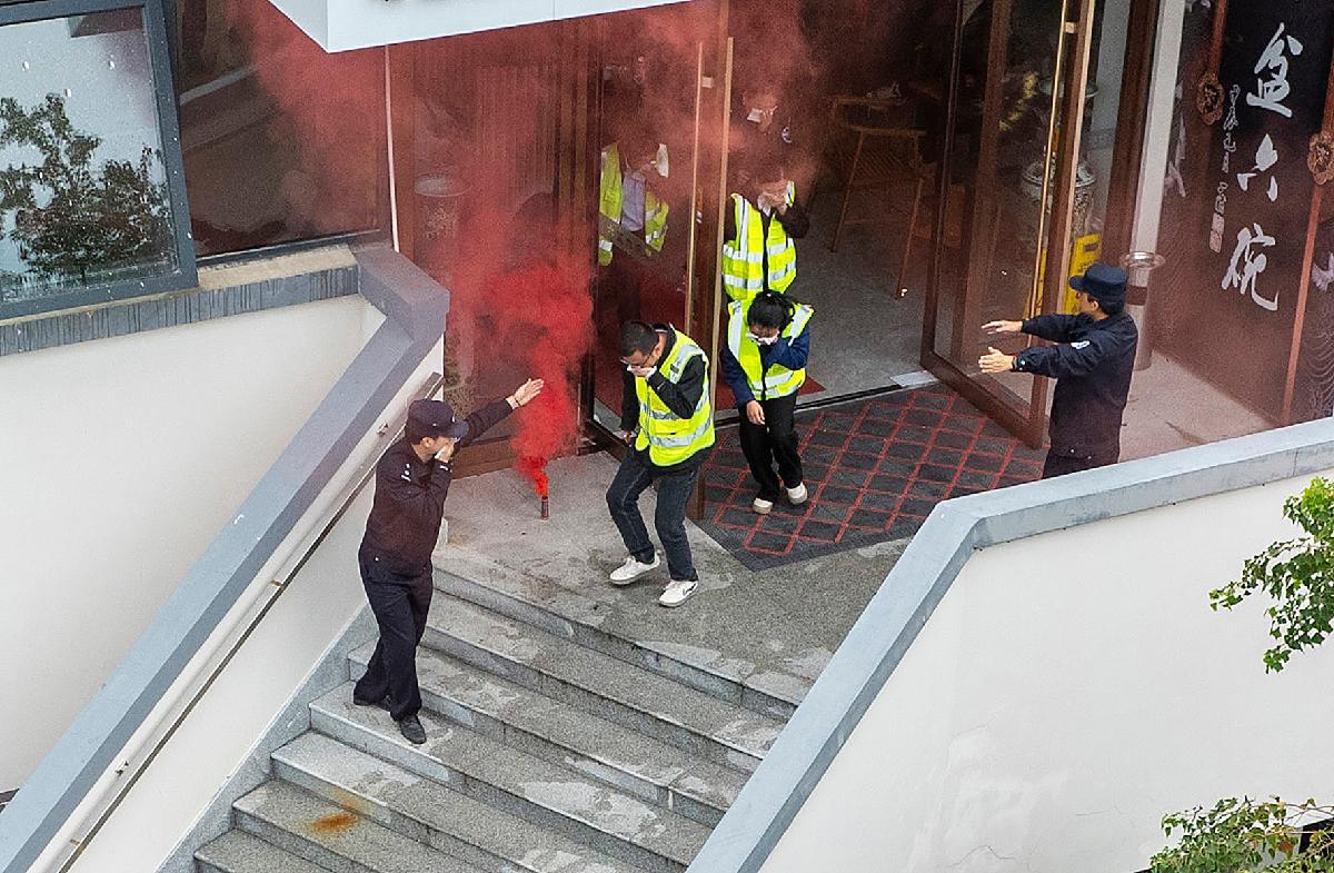 11月7日,上海市公安局崇明分局港西派出所民警走進(jìn)轄區(qū)和睦佳苑社區(qū)開展消防安全演練。