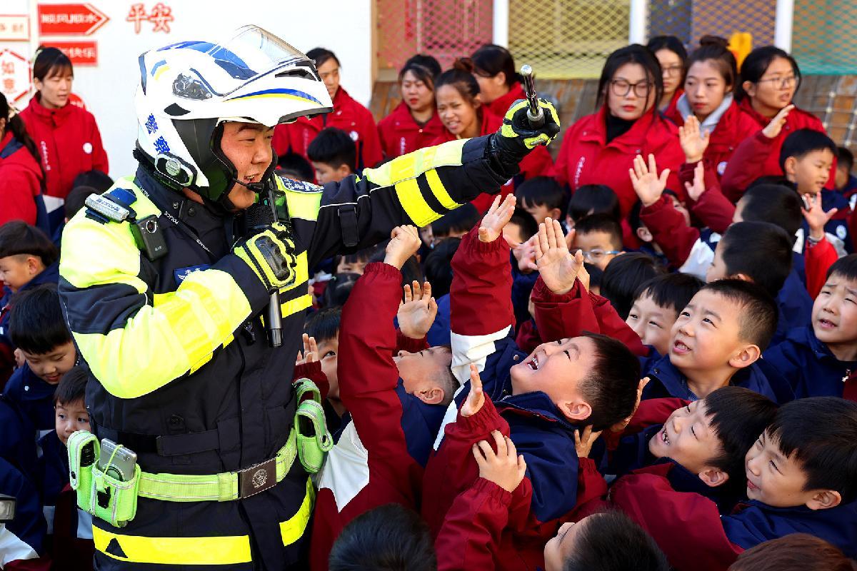 11月19日,山東省棗莊市公安局市中分局交通管理大隊開展冬季“護苗”交通安全宣傳。