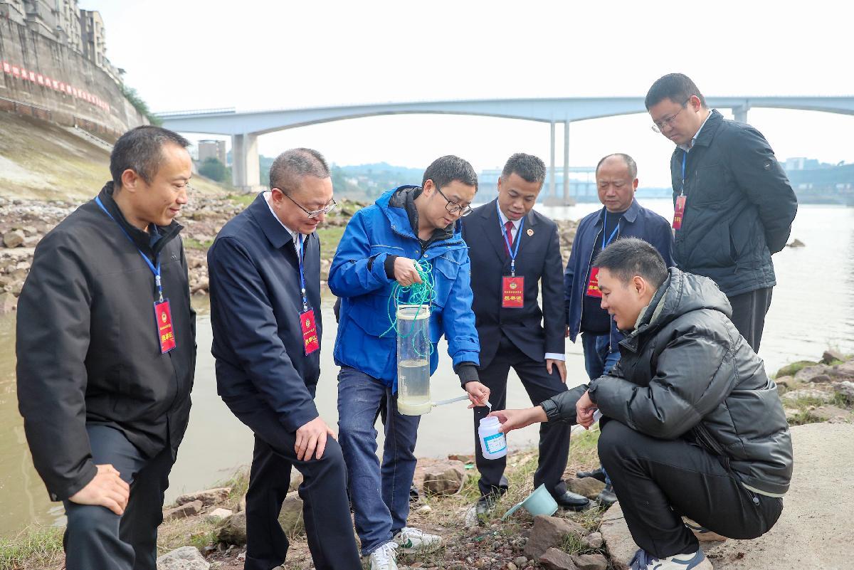 11月19日,政協(xié)委員和檢察干警在渠江邊回訪羅渡鎮(zhèn)居民生活污水排放治理效果。