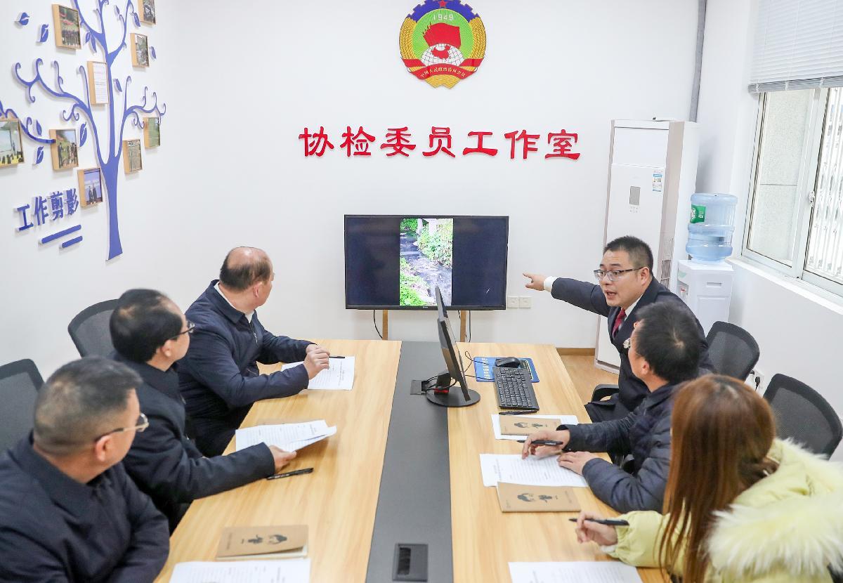 11月19日,政協(xié)委員和檢察干警觀看羅渡鎮(zhèn)居民生活污水直排治理的實(shí)施視頻。