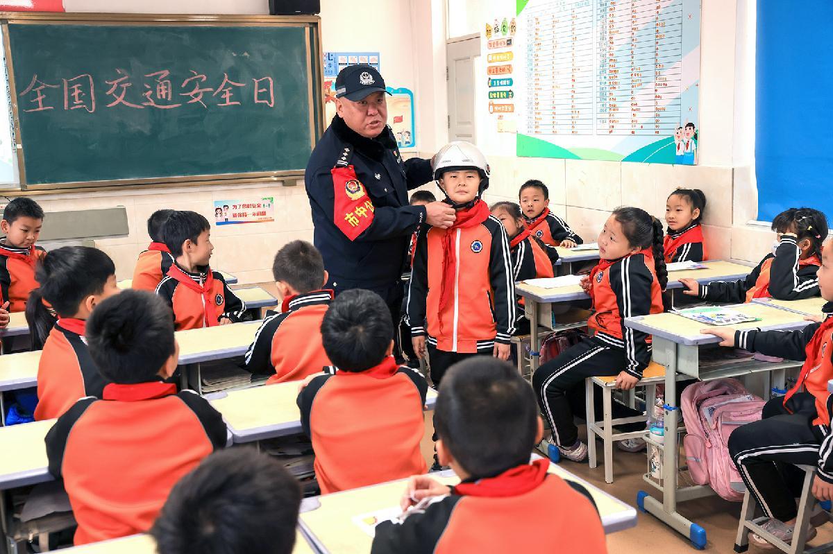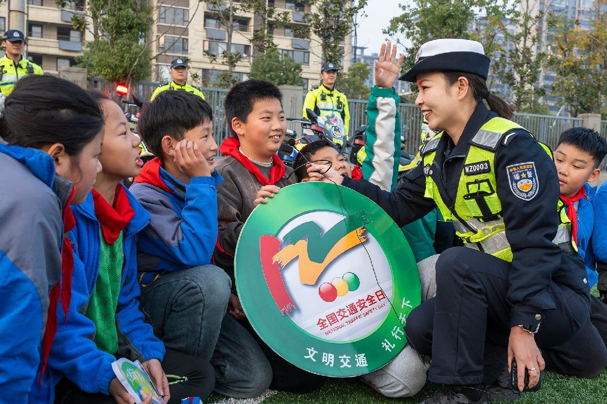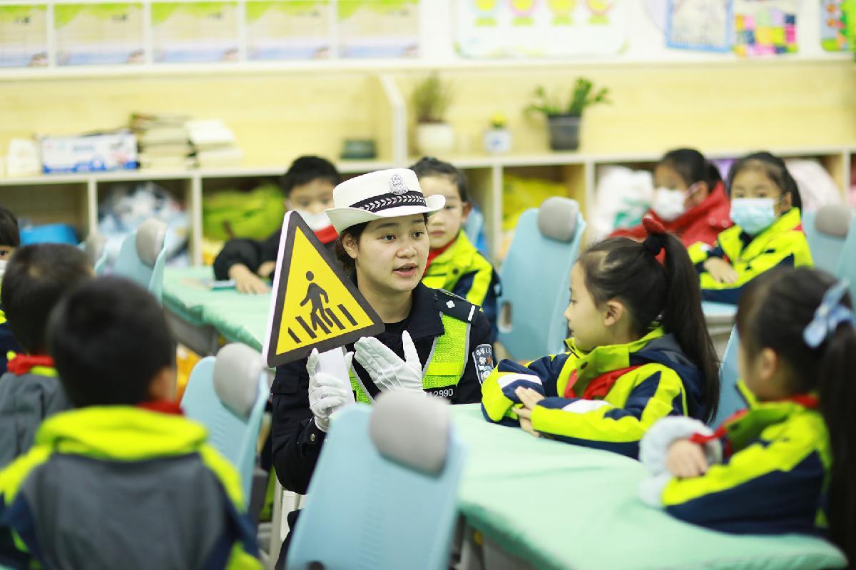 12月2日是第十四個(gè)“全國交通安全日”,貴州省赤水市公安局交警大隊(duì)民警走進(jìn)校園,向小朋友們普及交通安全知識(shí)。