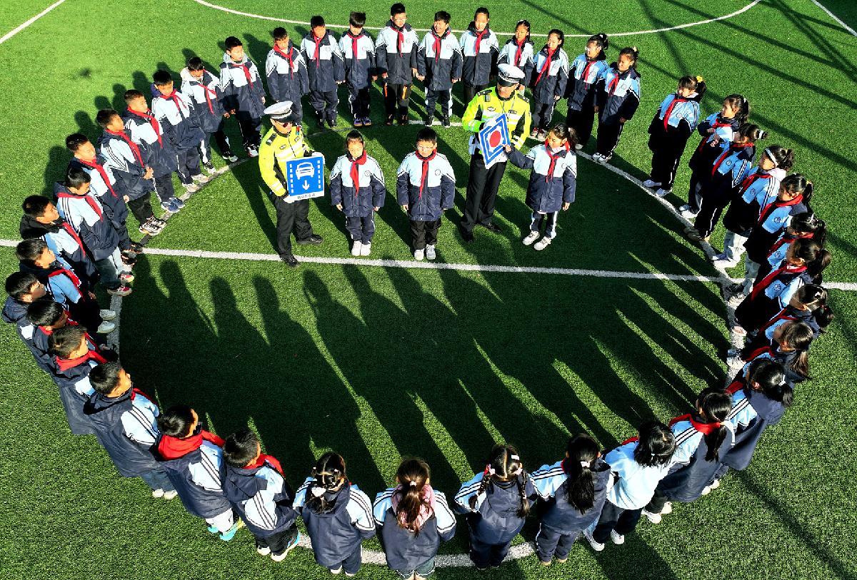 12月1日,在江蘇省連云港市院前小學(xué),連云港市公安局交警支隊(duì)連云大隊(duì)民警為學(xué)生講解交通安全知識(shí)。